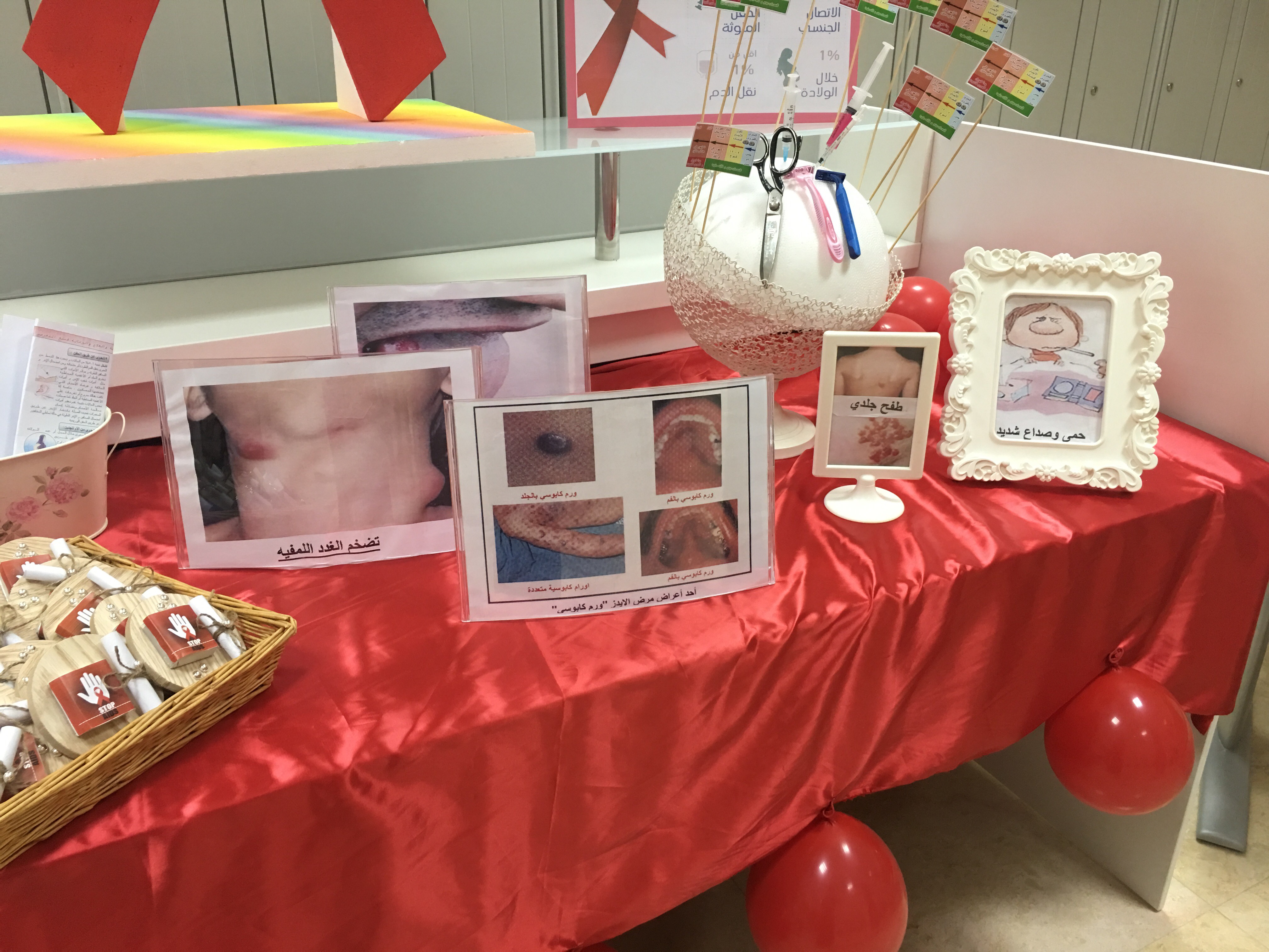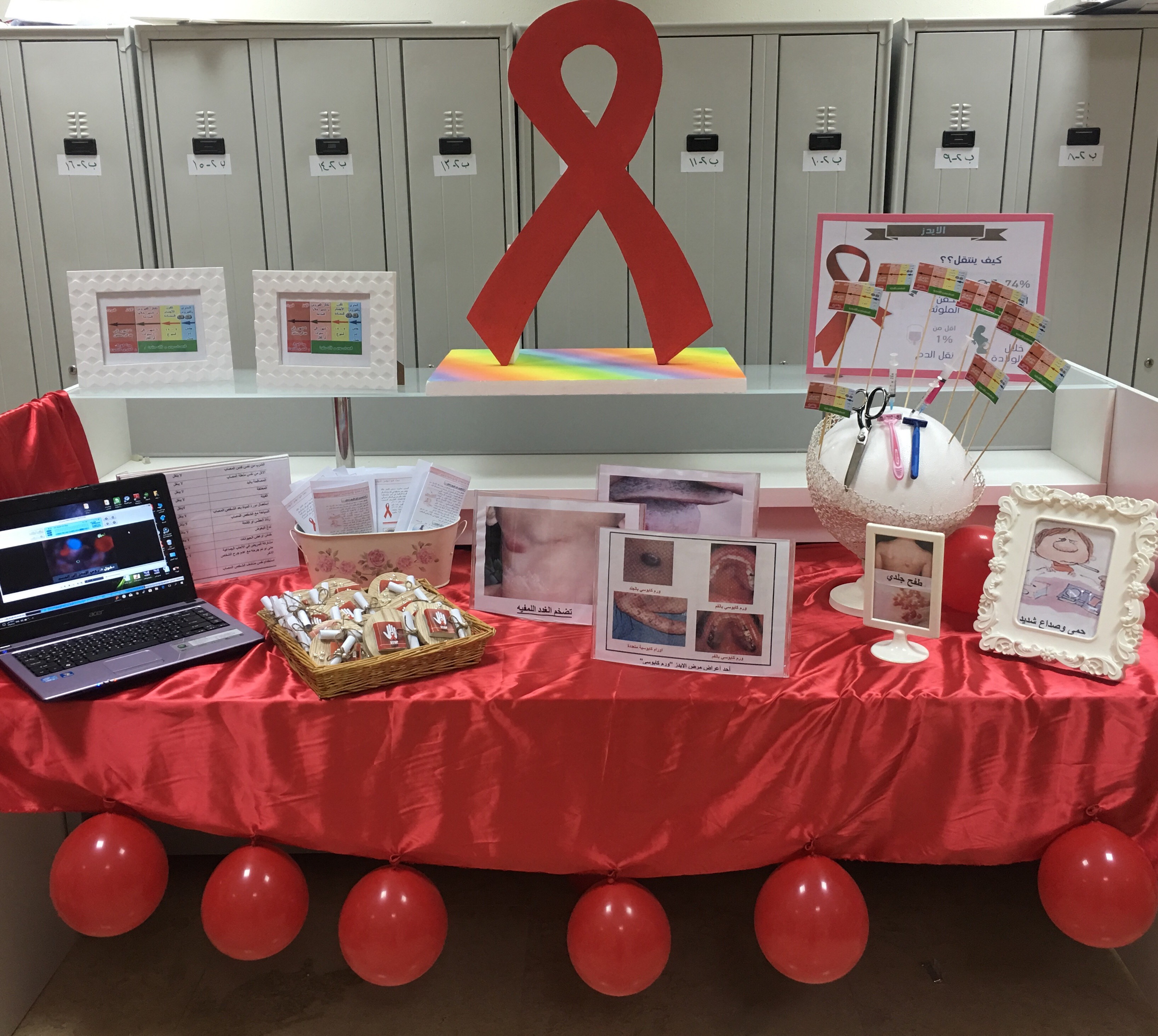 قامت طالبات قسم الأحياء بعمل نشاطاً توعوياً عن (الإيدز) اليوم الأحد الموافق 1/3/1439 هـ بإشراف الدكتورة شرين الخولي أمام قسم الأحياء.
