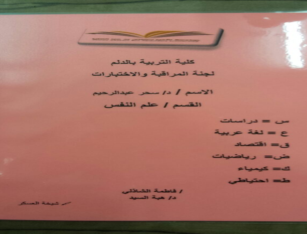 كما اطلعت خلال الزيارة على آلية عمل لجنة الاختبارات بالكلية، محاضر الاجتماعات، وكافة التعاميم المتعلقة بها وتوقيع عضوات هيئة التدريس ومن في حكمهم عليها بالعلم والعمل بما فيها. كذلك الاطلاع على آلية وضع الاختبارات النهائية حسب ما نص عليه دليل إجراءات الاختبارات النهائية.