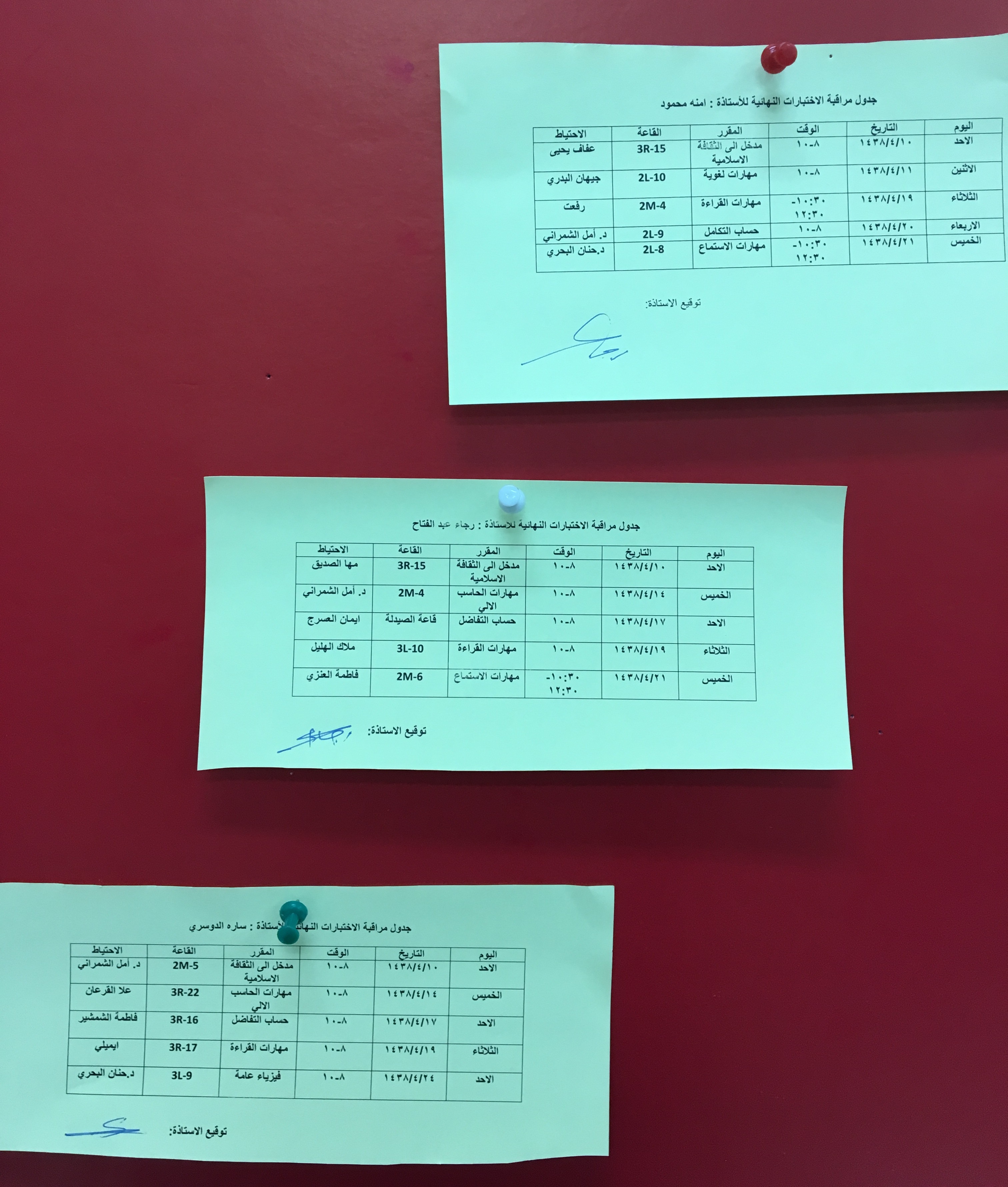 وقد قامت أ. فاطمة الشاذل بالإطلاع على مدى جاهزية العمادة خلال فترة الاختبارات النهائية وكافة الاستعدادات اللازمة حسب ما ورد في دليل إجراءات الاختبارات النهائية .