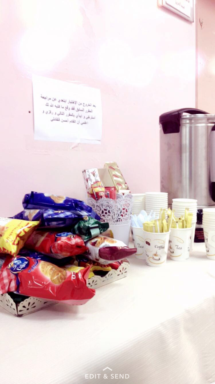 وكما أشادت أيضاً على انضباط والتزام المراقبات بالوقت وتهيئة أجواء مريحة للطالبات بوضع ركن يقدم فيه المشروبات الساخنة والمأكولات الخفيفة والعبارات التحفيزية للطالبات قبل دخولهن للاختبار وذلك لتخفيف التوتر والقلق المصاحب للاختبار .