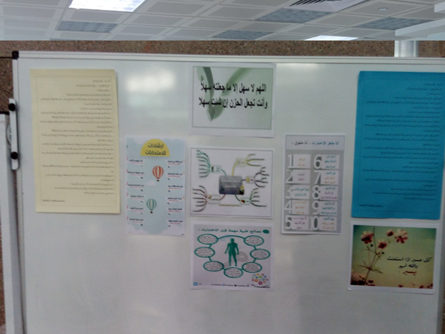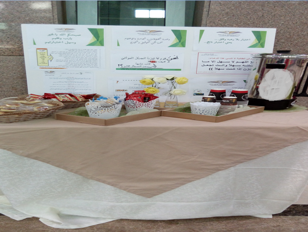 كما أعدت وحدة الإرشاد برئاسة د. هويدا عبد الفتاح لافتات توعوية متنوعة خاصة بالاختبارات، وتم توزيعها في أماكن بارزة بالكلية ، وأيضا قدمت وحدة العلاقات العامة والإعلام تحت إشراف أ/ سارة الدوسري مبادرة ركن المشروبات الساخنة للطالبات أثناء فترتي الاختبارات النهائية.