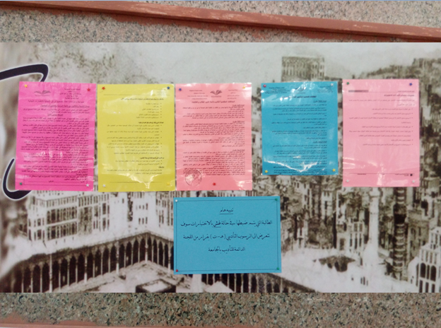 كذلك اثنت على التزام الكلية بنشر تعليمات ولوائح الاختبارات سواء عن طريق شاشات العرض بكافة ساحات الكلية، أو اللافتات التوجيهية والإعلانية بكافة أقسام الكلية طبقاً لما ورد في دليل إجراءات الاختبارات النهائية بوكالة الشؤون التعليمية والأكاديمية بالجامعة.