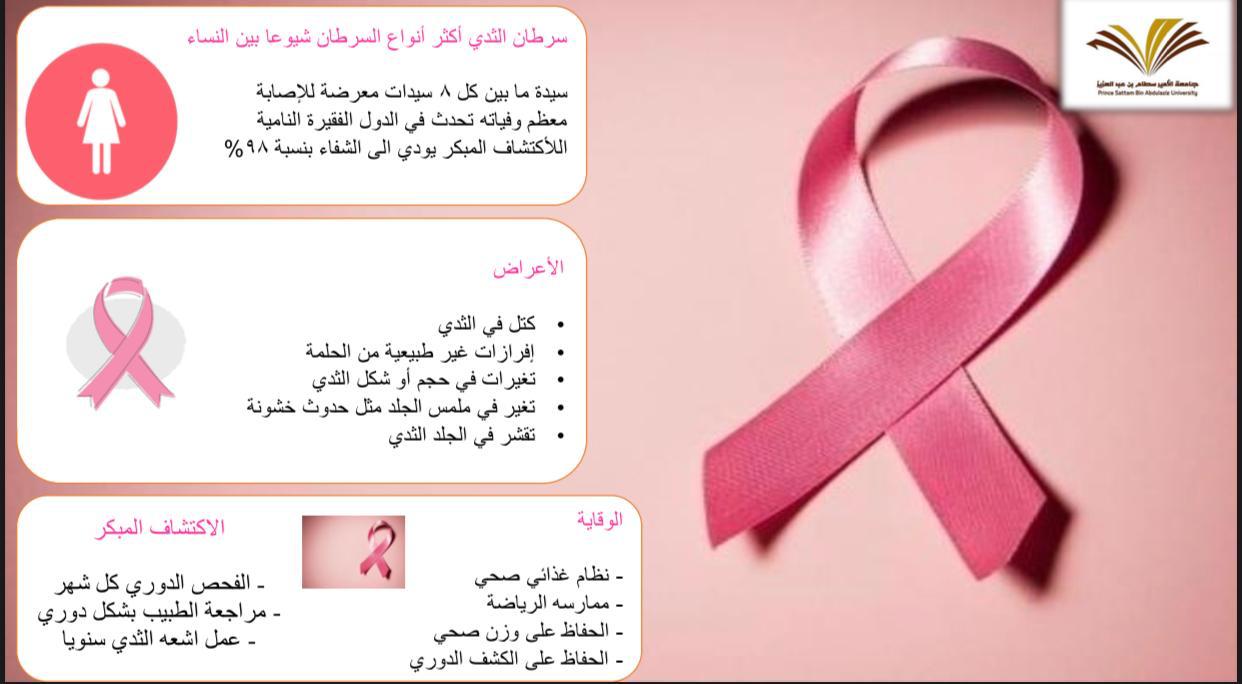 كل عام تتكاتف جهود عضوات المجلس الطلابي بكلية التربية بالخرج وتحديداََ شهر أكتوبر، تركز الحملات الصحية في المجتمع المحلي على تثقيف الناس حول الوقاية من سرطان الثدي وعلاجه. وأكدت على ذلك أ / حنان العبدالقادر مشرفة المجالس الطلابية بعمادة شؤون الطلاب بأهمية تفعيل هذه الحملات حيث تساهم في رفع الوعي والحد من وصمة سرطان الثدي عن طريق التعريف بالأعراض والعلاج. ويأمل القائمون على هذه التوعية أن زيادة المعرفة سيؤدي إلى الكشف المبكر عن سرطان الثدي، الذي يرتبط بمعدلات أعلى للبقاء على قيد الحياة على المدى الطويل.
