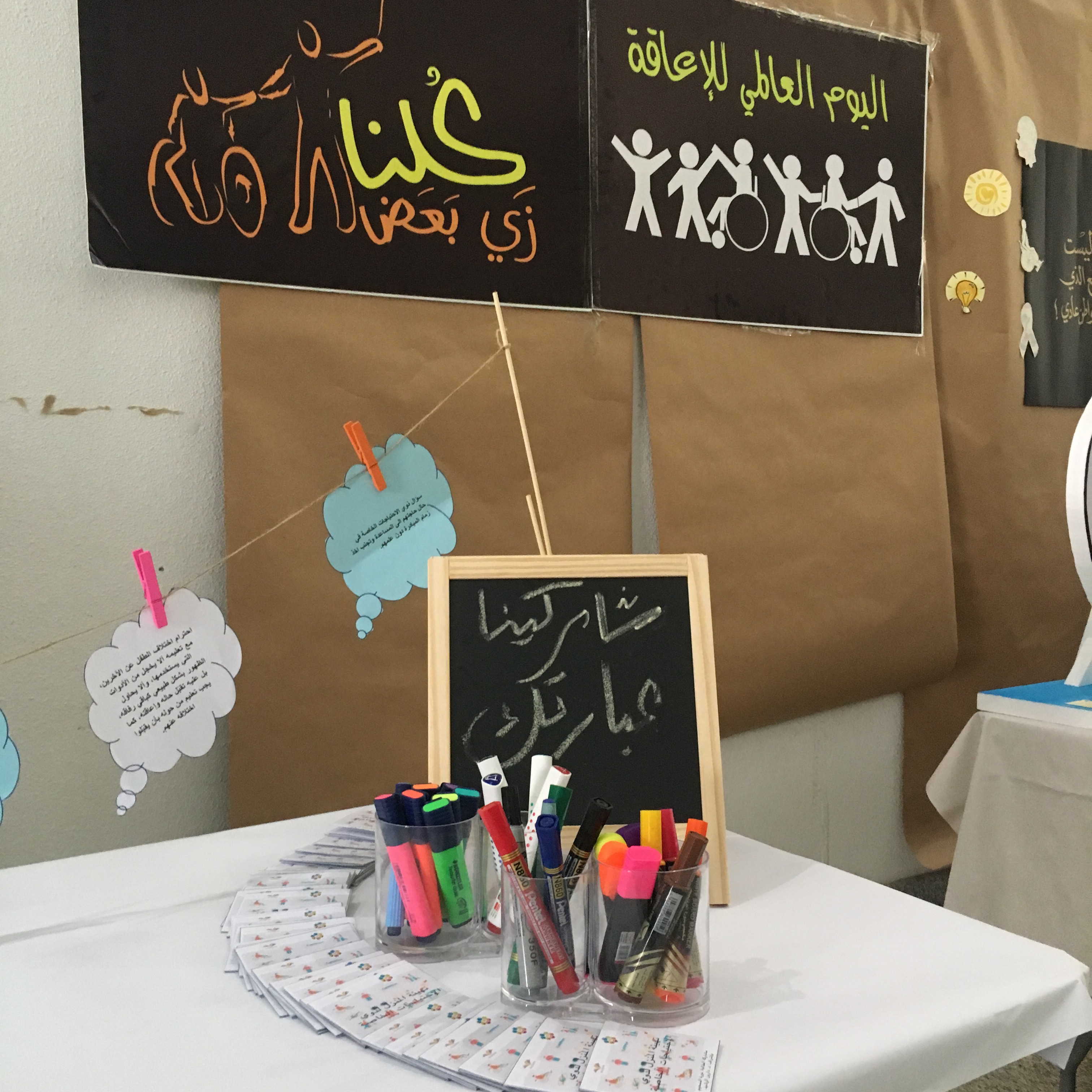 أقام قسم التربية الخاصة يوم الأربعاء 20/ 3/ 1440هـ بتفعيل (اليوم العالمي لإعاقة) تحت إشراف: دارين محمد الرشيد و بمشاركة طالبات قسم التربية الخاصة أقيمت الفعالية في البهو الرئيس للكلية بحضور الدكتورة/ نورة العلي وكيلة الكلية للشؤون المالية والإدارية. وتهدف الفعالية لتوعية الأعضاء والطالبات من الأقسام الأخرى بتعاريف الإعاقات وعرض نماذج وتجارب للمعاقين من جميع الإعاقات ووسائل تخدم فئة ذوي الاحتياجات الخاصة، والاطلاع على ماهو حديث ويخدم هذه الفئة من وسائل التكنولوجيا الحديثة ومعرفة الطالبات إلى كيفية استخدام البرامج من خلال التقنية.