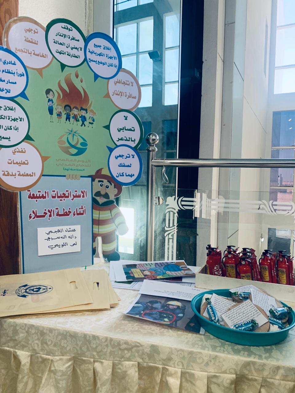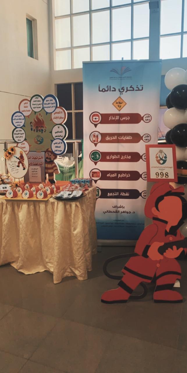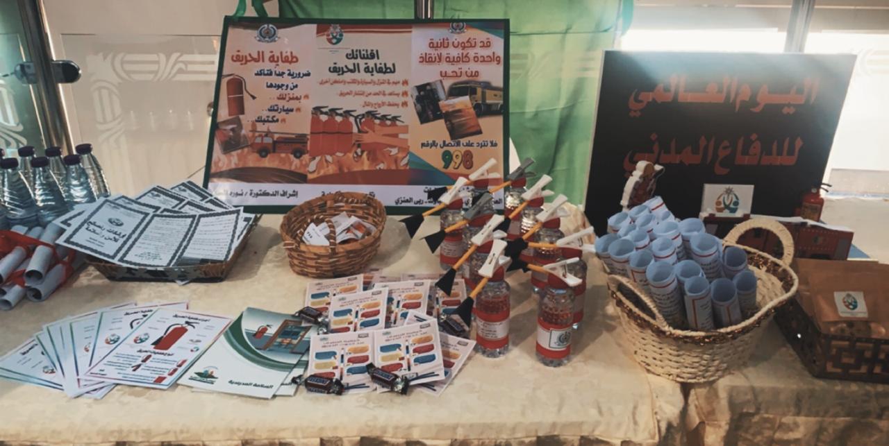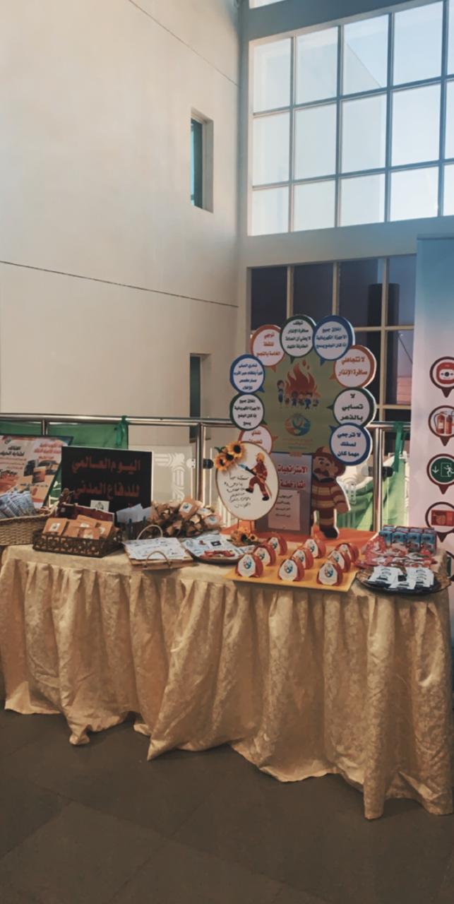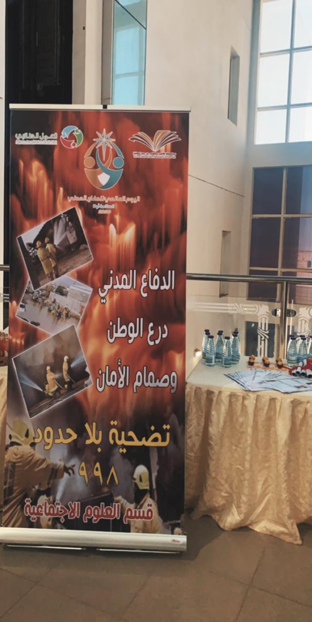 تفعيلاً لليوم العالمي للدفاع المدني وتقديراً لما تقوم به أجهزة الدفاع المدني من جهود عظيمة ومتواصلة للحفاظ على أمن وسلامة مجتمعنا السعودي من خطر الكوارث الطبيعية والبشرية والتقليل من الآثار المأساوية التي تنتج عنها أقامت وحدة العمل الطلابي بالتنسيق مع الأقسام الأكاديمية بكلية التربية للبنات يوم الأربعاء الموافق 9/ 7 / 1441هـ, في تمام الساعة العاشرة صباحاً معرض تثقيفي اشتمل على مجسمات ولوحات ونشرات تثقيفية للتوعية بجهاز الدفاع المدني وما يقوم به من مهام وإجراءات لتحقيق الحماية والوقاية المدنية وتم عرض جانب من قواعد ووسائل الأمن والسلامة في مجالات عدة وقد حضر المعرض عدد من منسوبات الكلية من أعضاء هيئة التدريس وهيئة إدارية وطالبات وقد نالت محتويات المعرض إعجاب وتقدير الجميع.