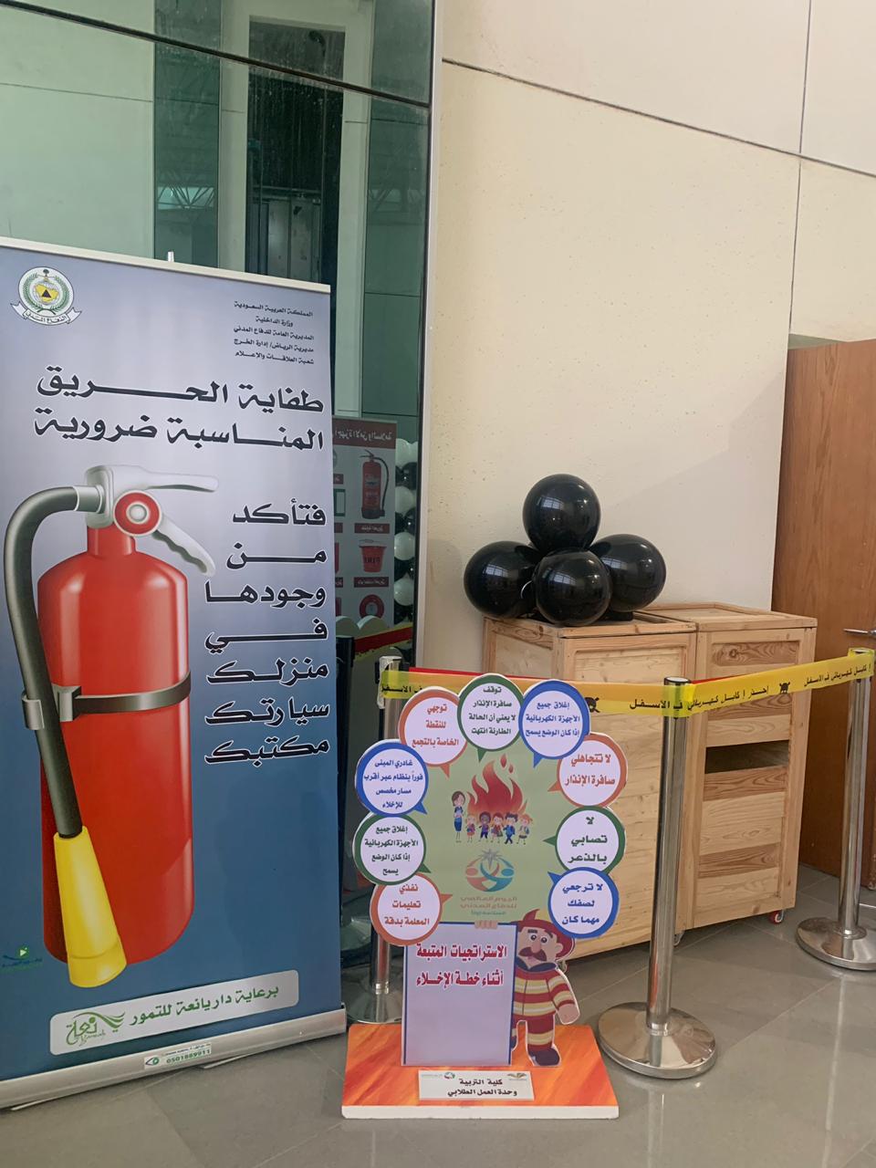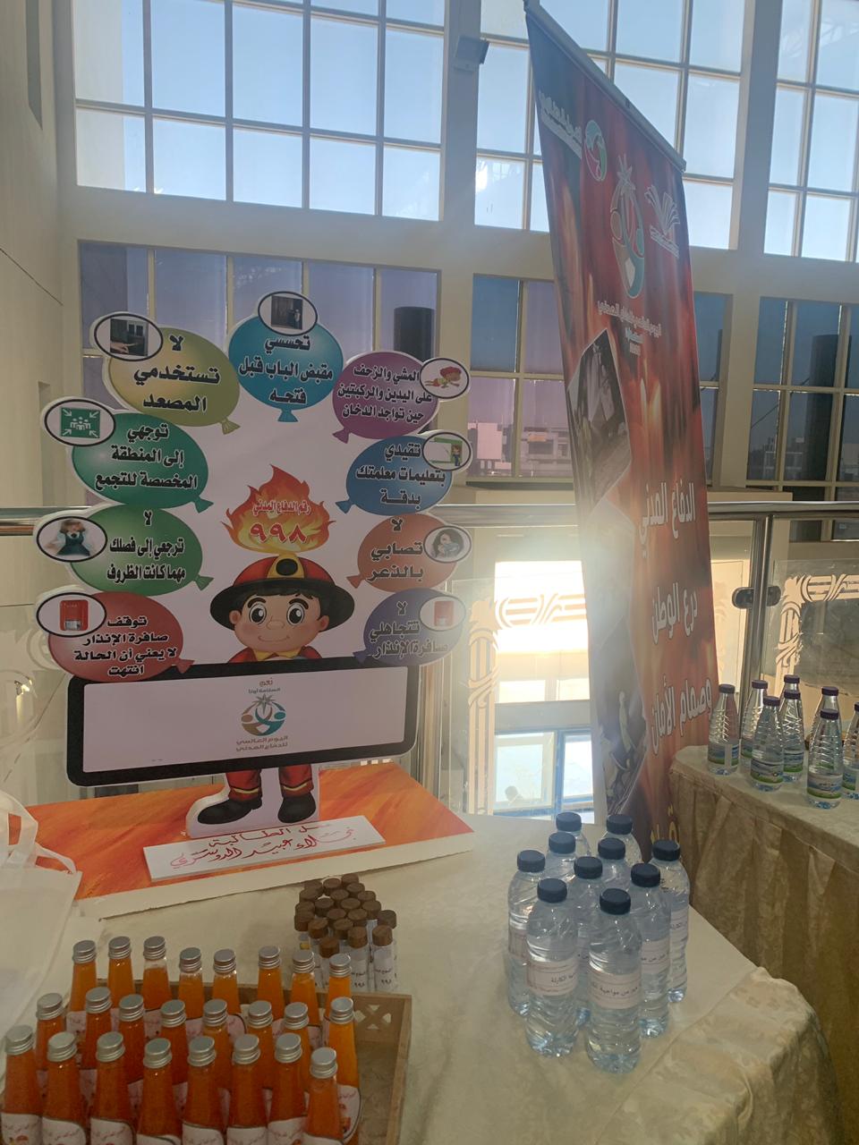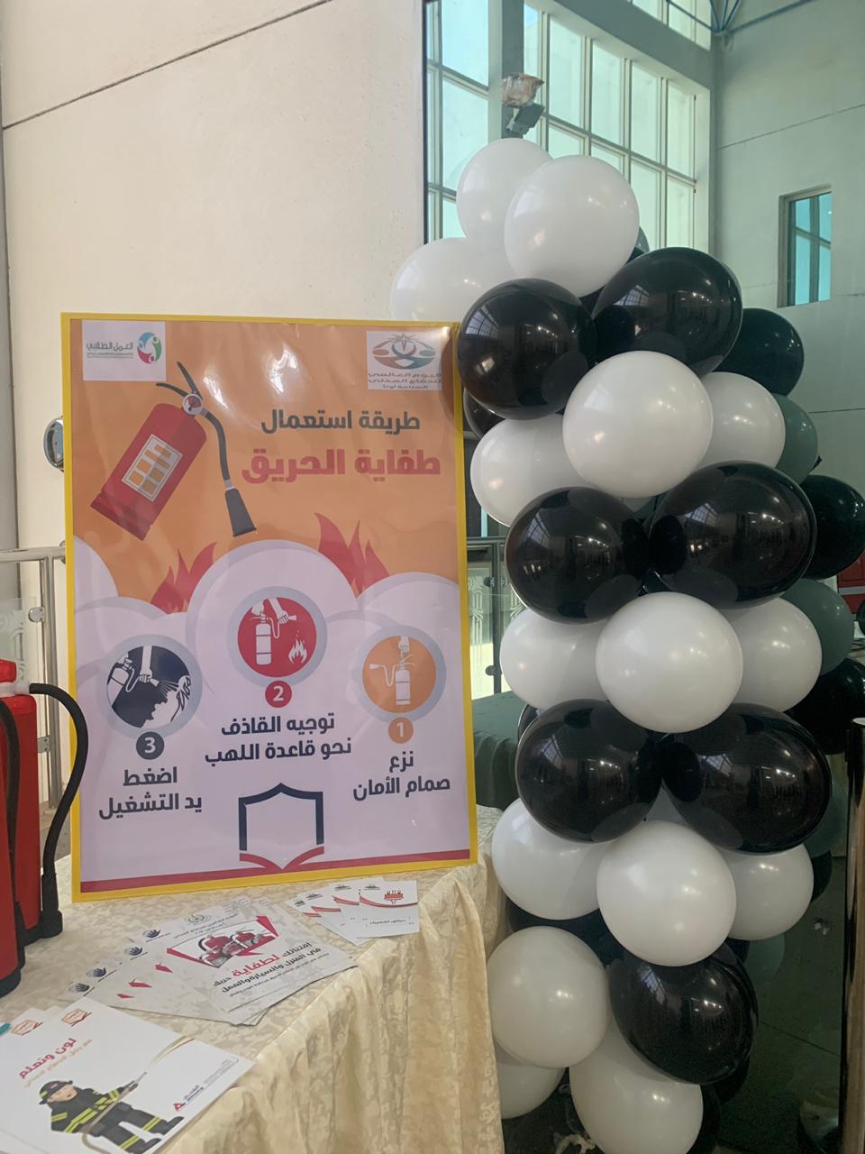 تفعيلاً لليوم العالمي للدفاع المدني وتقديراً لما تقوم به أجهزة الدفاع المدني من جهود عظيمة ومتواصلة للحفاظ على أمن وسلامة مجتمعنا السعودي من خطر الكوارث الطبيعية والبشرية والتقليل من الآثار المأساوية التي تنتج عنها أقامت وحدة العمل الطلابي بالتنسيق مع الأقسام الأكاديمية بكلية التربية للبنات يوم الأربعاء الموافق 9/ 7 / 1441هـ, في تمام الساعة العاشرة صباحاً معرض تثقيفي اشتمل على مجسمات ولوحات ونشرات تثقيفية للتوعية بجهاز الدفاع المدني وما يقوم به من مهام وإجراءات لتحقيق الحماية والوقاية المدنية وتم عرض جانب من قواعد ووسائل الأمن والسلامة في مجالات عدة وقد حضر المعرض عدد من منسوبات الكلية من أعضاء هيئة التدريس وهيئة إدارية وطالبات وقد نالت محتويات المعرض إعجاب وتقدير الجميع.