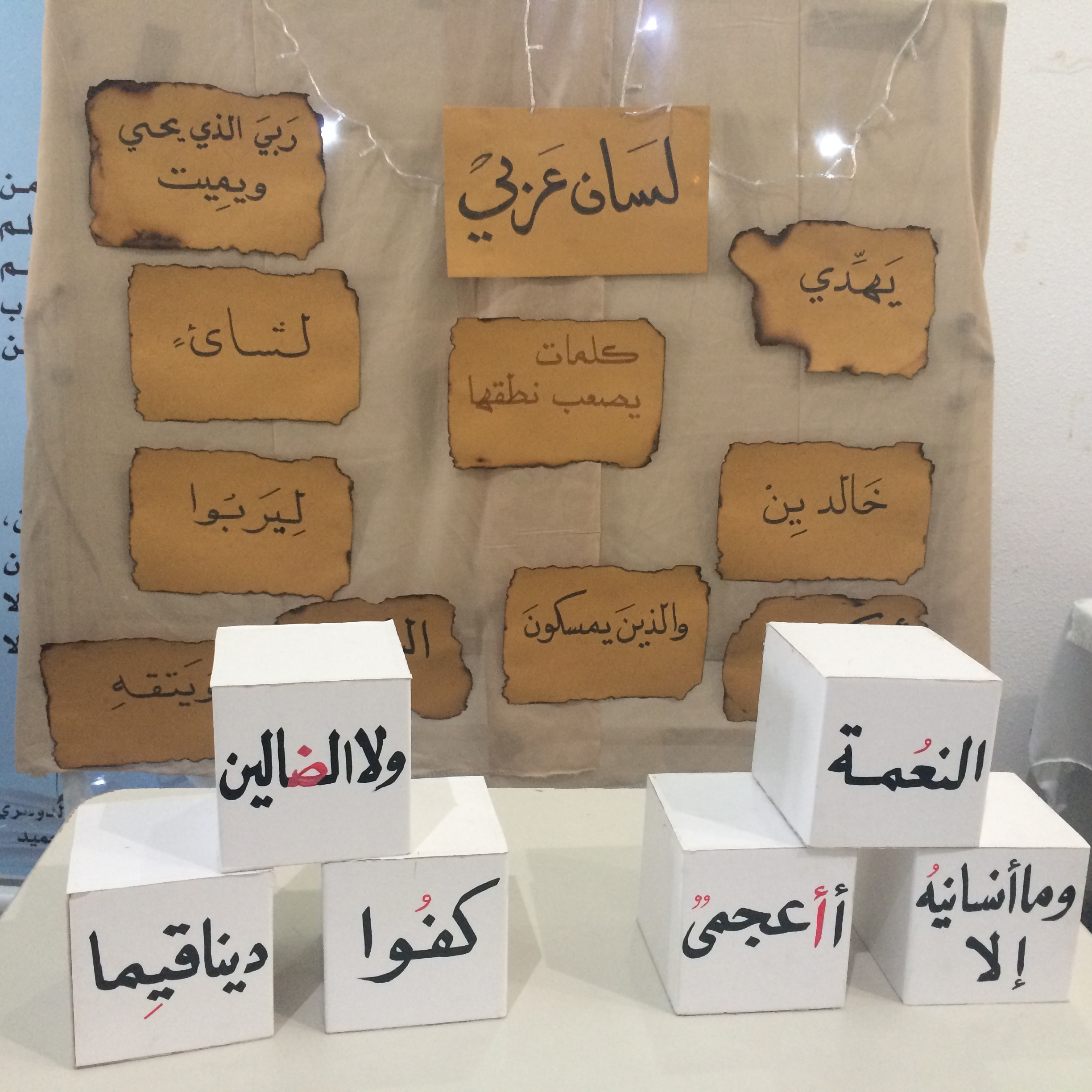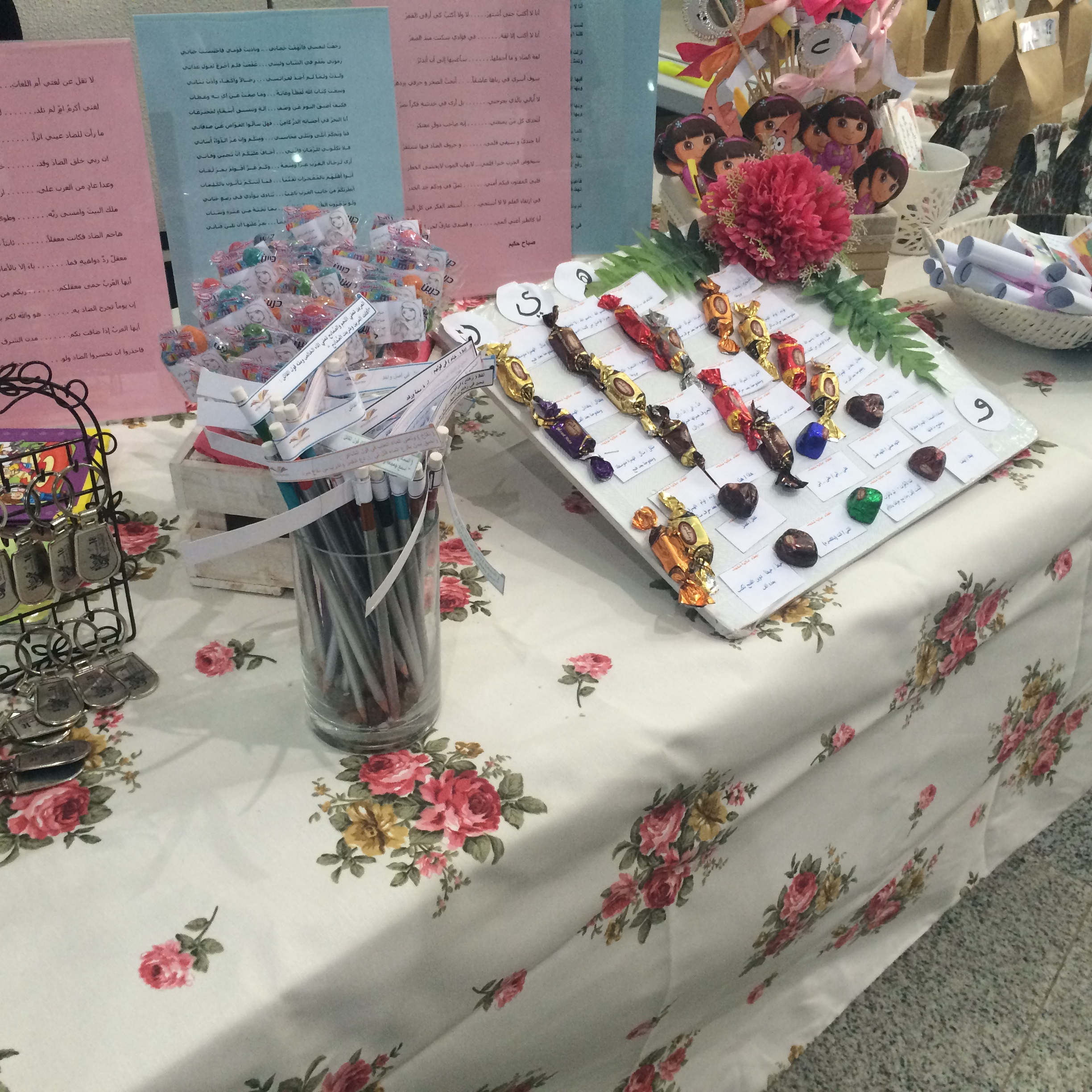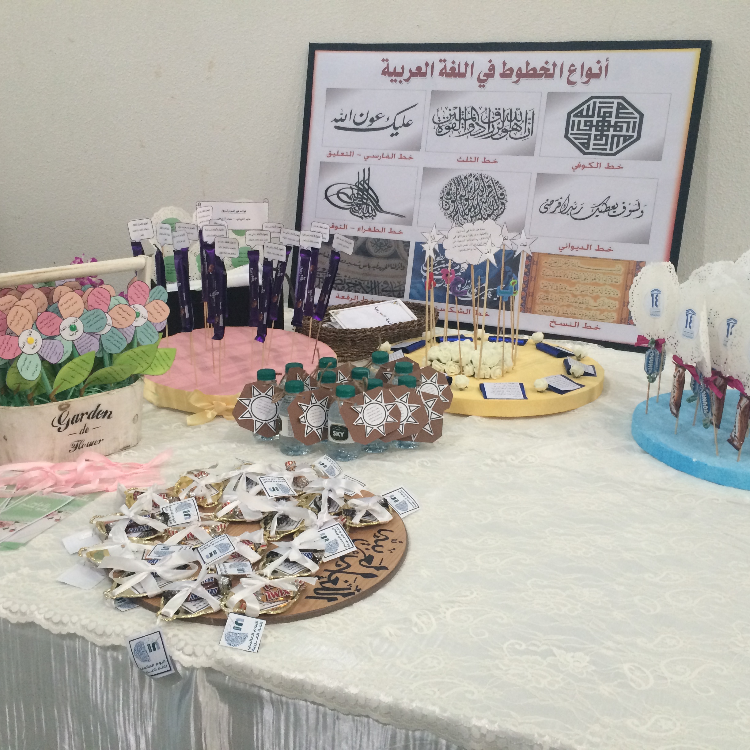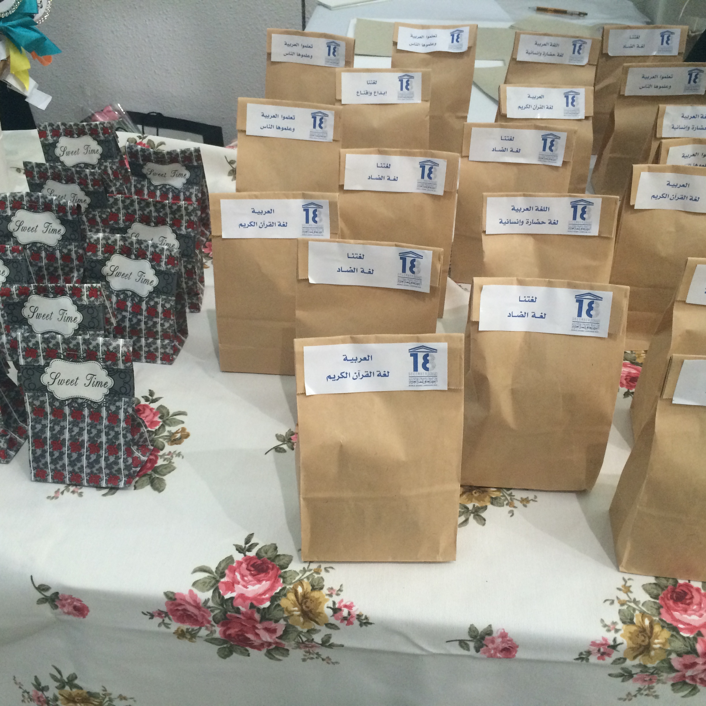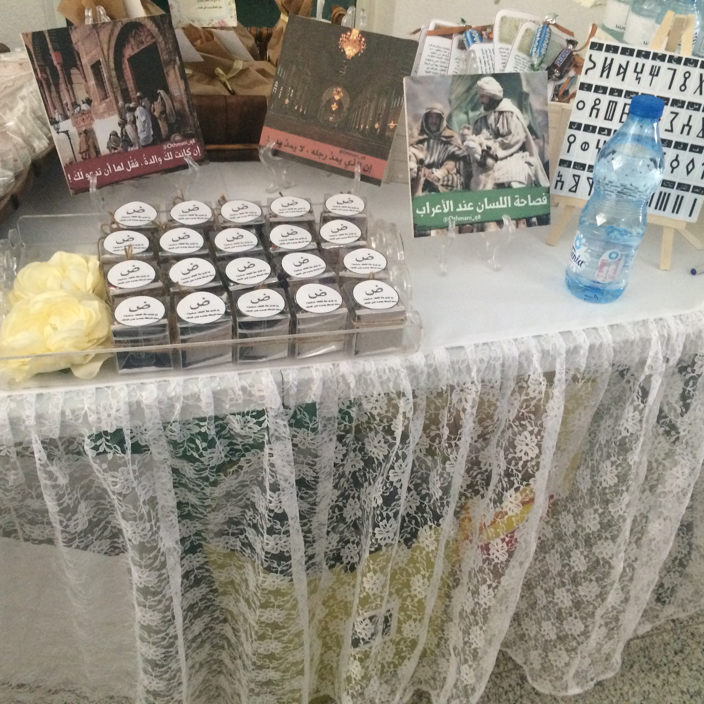 الجدير بالذكر أن المعرض تضمن بعض التوزيعات لغير الناطقين بالعربية تحمل عبارة اللغة العربية لغة الحب والسلام مترجمة إلى عدة لغات.