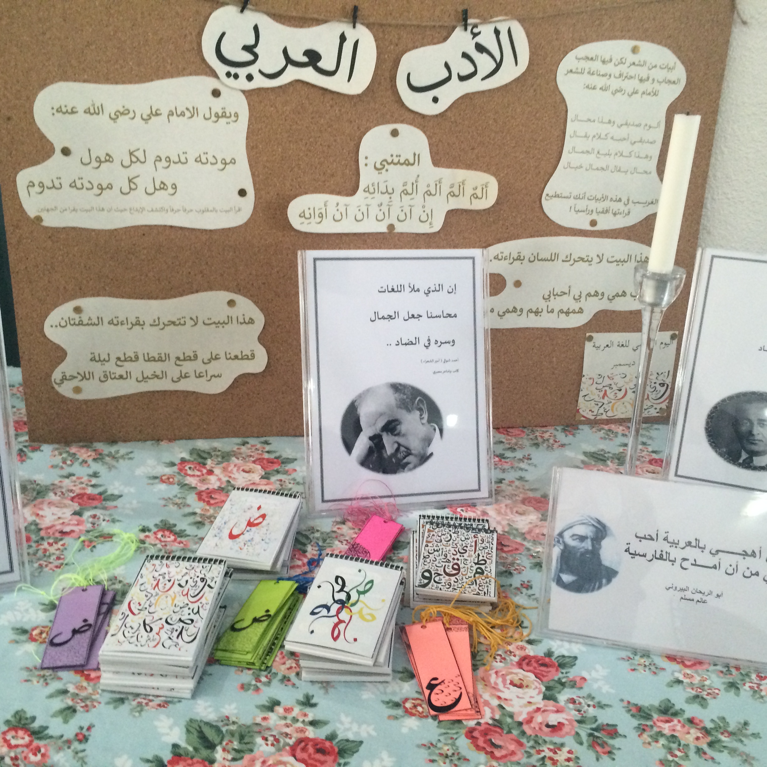 وتضمن المعرض أركان متعددة : ركن الشعر والشعراء والنحو والصرف والخط العربي وغرائب اللغة وركن فصاحتي بلغتي.