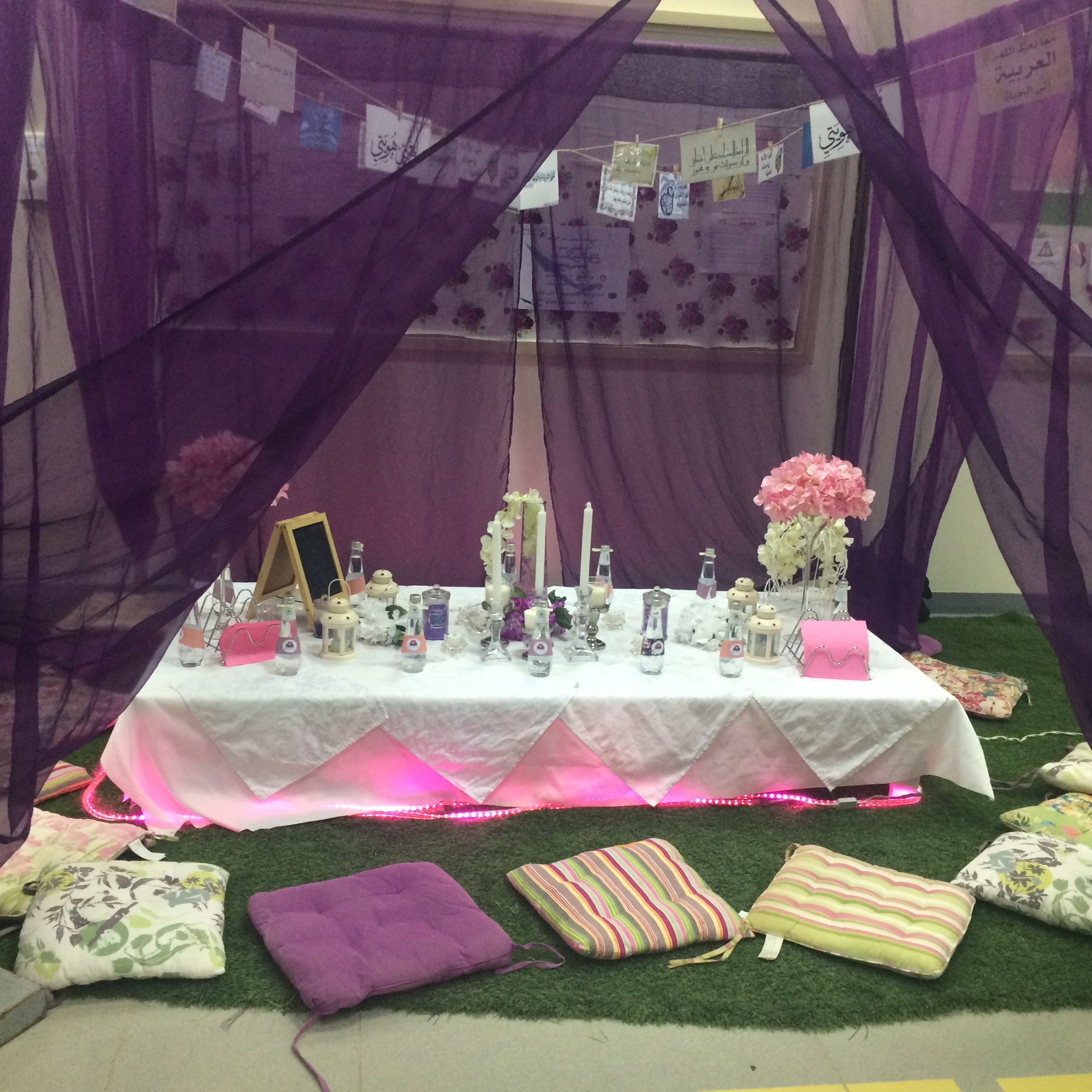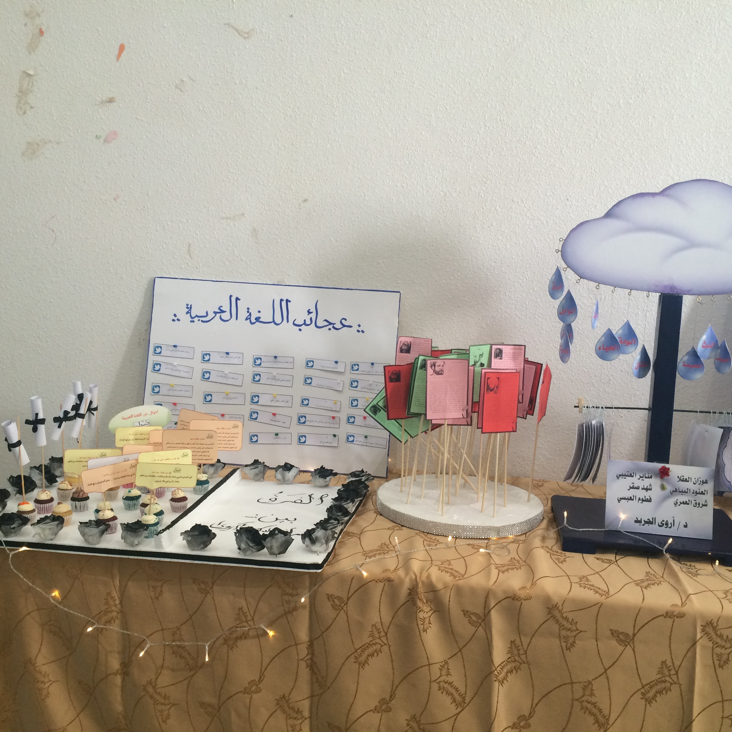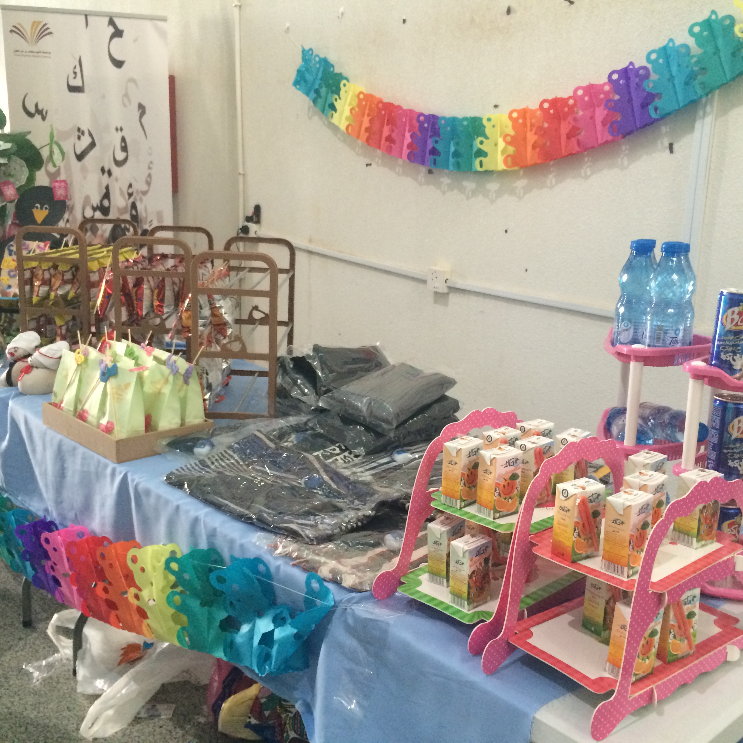 تعاون في تنفيذ هذا الركن عدد من طالبات قسم رياض الأطفال وطالبات قسم اللغة العربية.