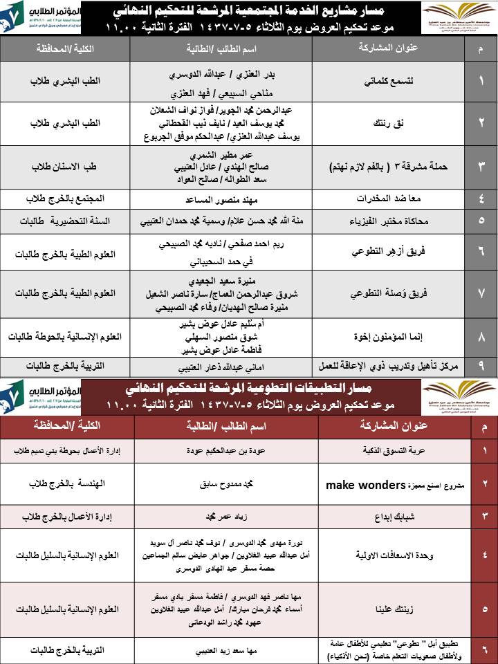 هذا وستنقل فعاليات تحكيم المشاريع العلمية والثقافية عبر الهواء مباشرة على موقع لايف ستريم على الرابط: