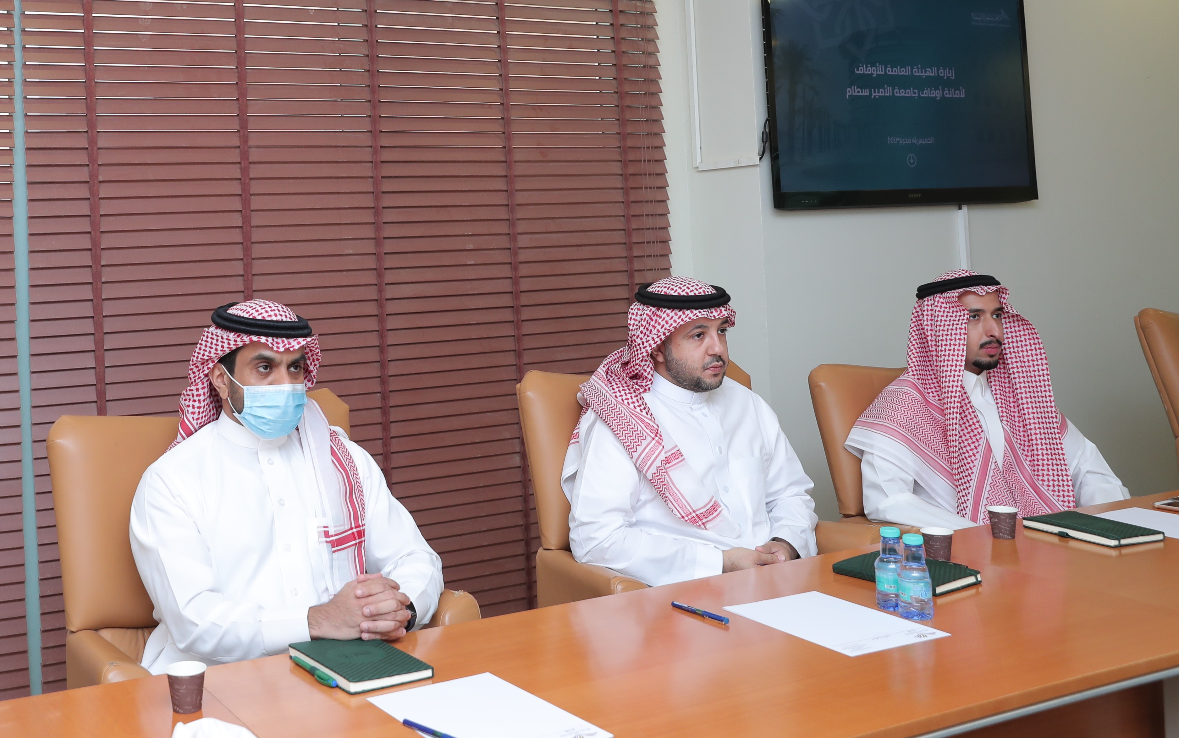 بتوجيه من معالي رئيس مجلس شؤون الجامعات وزير التعليم الدكتور حمد آل الشيخ بتسهيل زيارة فريق عمل الهيئة العامة للأوقاف لكافة أوقاف الجامعة استقبلت الأمانة العامة لأوقاف جامعة الأمير سطام اليوم الخميس ٤ محرم ١٤٤٣ الموافق ١٢ أغسطس ٢٠٢١ وفداً من الهيئة العامة للأوقاف على رأسهم مدير إدارة التفتيش بالهيئة الأستاذ محمد النوشان والأستاذ رامي السيف والأستاذ عبدالكريم المهيدب وشارك عن طريق الاتصال المرئي الأستاذ عمر المحاسنة والأستاذة مشاعل أبو عباة، وكان في استقبال الوفد من جامعة الأمير سطام الأمين العام لأوقاف الجامعة الدكتور عبدالرحمن بن عبدالعزيز الجريوي ، وأعضاء اللجنة التنفيذية لأوقاف الجامعة الدكتور عبدالعزيز المبرد والمهندس يزيد الحقباني والأستاذ عبدالله التميمي والأستاذ عثمان العمودي، وجرى خلال اللقاء استعراض العديد من المحاور والتي كان من أهمها: أهمية الوقف الجامعي ، وعرض تجربة الجامعات الغربية وسبب تميزها ، وواقع أوقاف جامعة الأمير سطام والتحديات التي تواجه الجامعات المحلية، ثم ناقش أعضاء الهيئة العامة للأوقاف أهم جوانب التكامل مع الهيئة وسبل تفعيل الشراكة مع الجامعة.