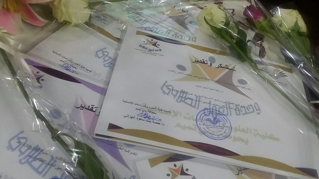 نظم نادي الإبداع بالتعاون مع وحدة العمل الطلابي بكلية العلوم والدراسات الإنسانية بحوطة بني تميم برنامج (أمسية شعرية) وذلك يوم الثلاثاء الموافق 15 /6/ 1438هـ شاركت فيها عدد من الدكتورات والأستاذات والطالبات بقصائد جميلة فكان لها صدى جميل في أرجاء الكلية كما شاركت د. عبير عبدالحكيم مؤلفة كتاب (بستان القلب) ببعض الأبيات من هذا الكتاب. وفي ختام الأمسية تم شكر الشاعرات من عميده الكلية د. حصة الهزاني وتسليمهن شهادات الشكر لمشاركاتهن. حضر الأمسية عدد كبير من منسوبات وطالبات الكلية بما يزيد على 60.