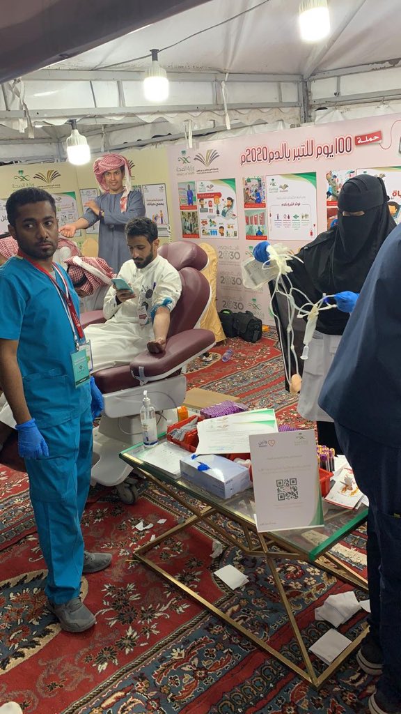وأقيم المعرض التوعوي الأول تحت شعار " شراكتنا مواكبة لرؤية قيادتنا ". واحتوى المعرض على ثلاثة أركان أساسية: ركن مكافحة العدوى وركن حملة ١٠٠ يوم للتبرع بالدم وركن مكافحة التدخين. ، كما تتضمن أجنحة المعرض مجموعة من الصور والمبادرات المشتركة التي أقيمت بهدف خدمة أبناء المحافظة من خلال قطاعي الصحة والتعليم ، وشهدت الحملة تسجيل عدد كبير من حالات التبرع بالدم وتم منح المتبرعين شهادة تبرع موقعة باسم كلية الآداب والمستشفى العام.