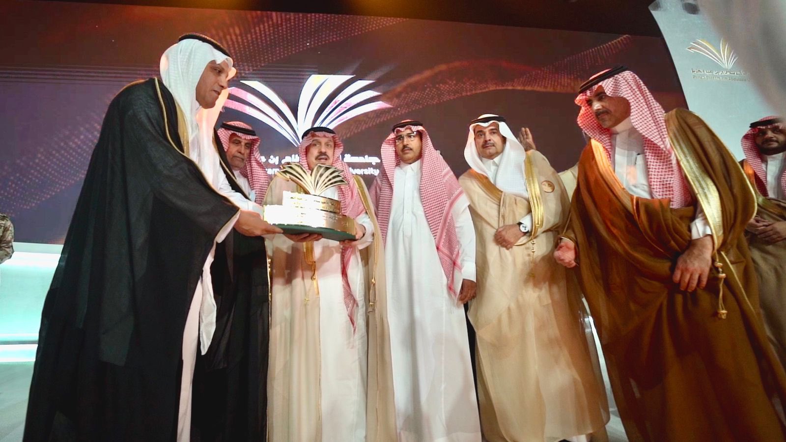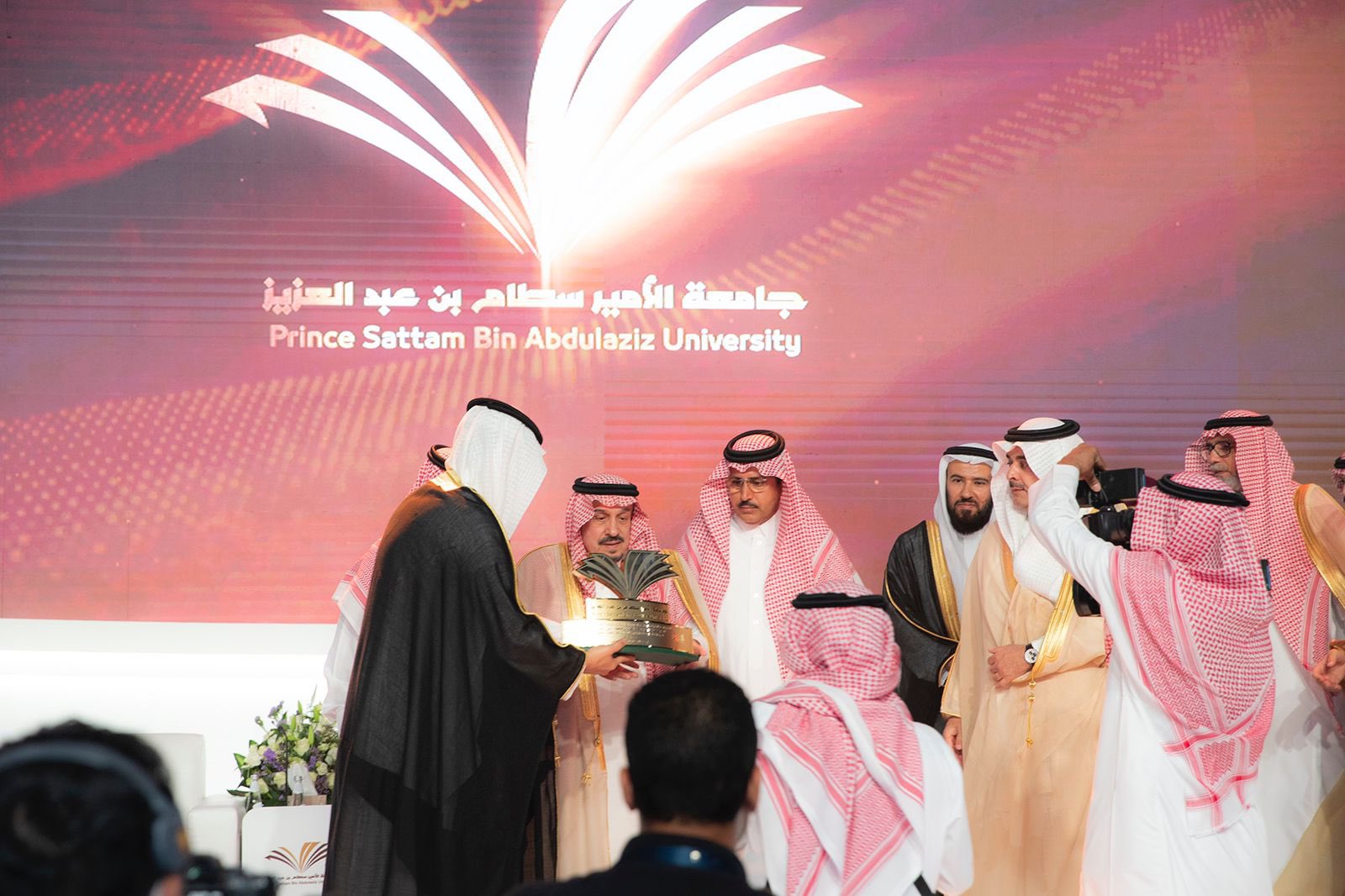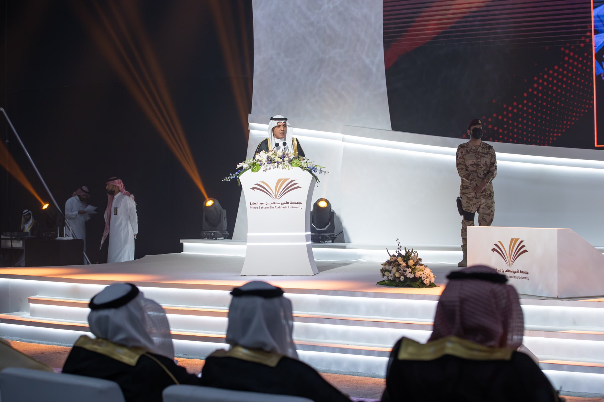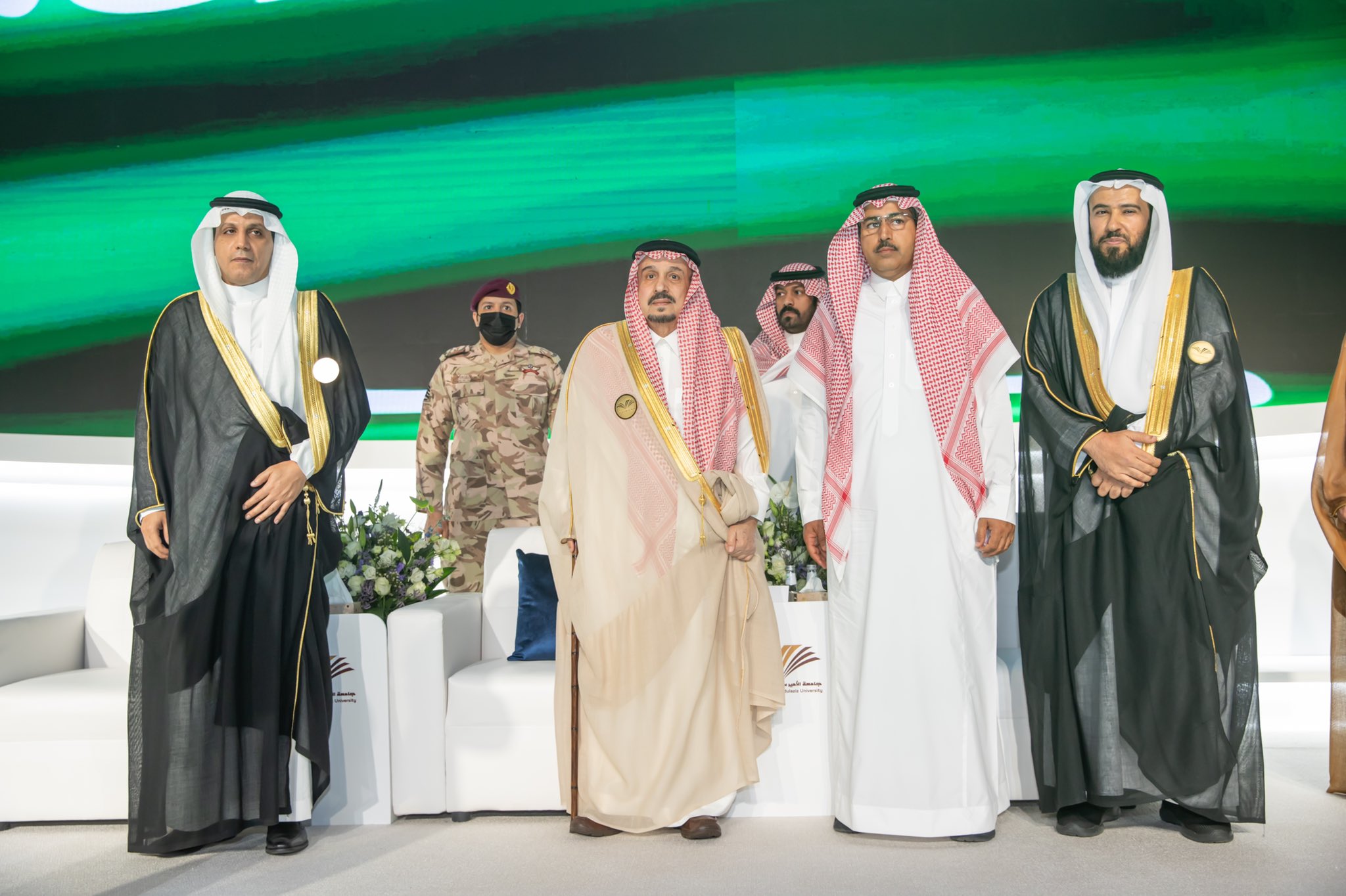 رعى صاحب السمو الملكي الأمير فيصل بن بندر بن عبدالعزيز أمير منطقة الرياض اليوم الأربعاء الموافق 1 / 6 / 2022م حفل تخريج الدفعة الثالثة عشر من طلاب البكالوريوس والدفعة الخامسة من طلاب الماجستير والدفعة الثالثة عشر من طلاب الدبلوم للعام الجامعي 1443هـ والبالغ عددهم 1400 طالباً وذلك في الحرم الجامعي بالخرج حيث كان في استقبال سموه لدى وصوله مقر الحفل سعادة رئيس الجامعة ووكلاء الجامعة وعدد من العمداء. واستهل الحفل بالسلام الملكي ثم بمقدمة الحفل والتي رحب من خلالها بسمو أمير منطقة الرياض وبسعادة رئيس الجامعة وأصحاب المعالي والفضيلة والحضور الكريم على تشريفهم ورعايتهم هذا الحفل وأن هذه الرعاية الكريمة تجسد مدى حرص واهتمام القيادة الرشيدة للمملكة "وفقها الله" على دعم مسيرة التعليم الجامعي ومشاركة هذه الكوكبة النيرة من أبناء الوطن في يوم حصادهم العلمي والذي جاء بعد رحلة جد واجتهاد طويل في بحر العلوم والمعارف مما كان له الأثر في تحقيق كفاءات علمية مقدرة وخبرات تربوية عملاقة ، ثم بدأت مسيرة الخريجين بمختلف التخصصات ، بعد ذلك بدأ الحفل الخطابي بتلاوة آيات عطرة من القرآن الكريم ، ثم كلمة الخريجين والتي عبروا من خلالها عن العناية والرعاية التي يجدونها من لدن حكومة خادم الحرمين الشريفين وسمو ولي عهده الأمين "حفظهما الله" في شتى المجالات ، وأشادت بالعطاء الملموس من قبل قادة الجامعة وأساتذتها الكرام معربين عن فرحتهم بهذه المناسبة وتطلعهم لخدمة دينهم ووطنهم بمختلف تخصصاتهم في ميادين العمل وبما يساهم في تحقيق رؤية المملكة 2030م ، عقب ذلك شاهد الحضور عرض فيلم وثائقي عن مسيرة جامعة الأمير سطام بن عبدالعزيز وفروعها وابرز المنجزات التي حققتها إضافة إلى ما أحرزته من حراك علمي وبحثي ومجتمعي.