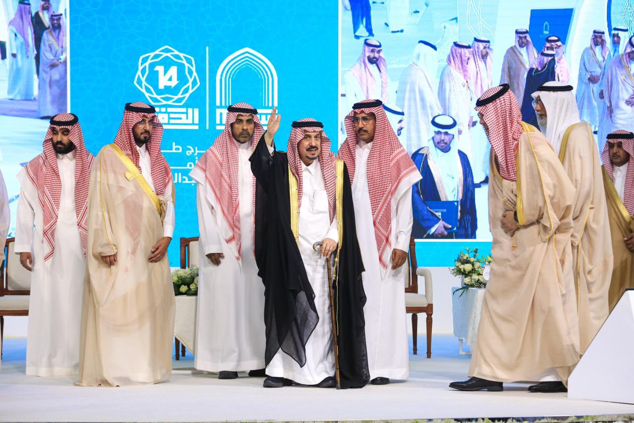 رعى صاحب السمو الملكي الأمير فيصل بن بندر بن عبدالعزيز أمير منطقة الرياض اليوم الخميس حفل تخريج الدفعة الرابعة عشرة من طلاب الجامعة للعام الدراسي الجامعي 1444هـ، وذلك في مقر الجامعة بمدينة الخرج، وكان في استقبال سموه لدى وصوله مقر الحفل سعادة رئيس الجامعة ووكلاء الجامعة وعدد من العمداء.