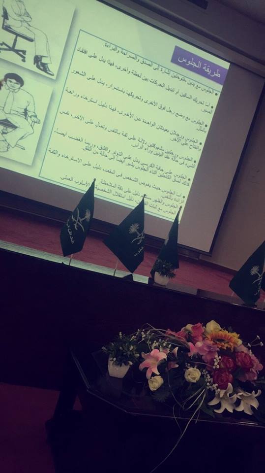استضافة قسم اللغة الانجليزية بكلية العلوم والدراسات الإنسانية بحوطة بني تميم الأستاذة: غادة المسعود مديرة وحدة الخدمات الإرشادية في الشؤون التعليمية لإلقاء محاضرة عن الأنماط الشخصية وتحدثت المحاضرة عن عدة محاور منها الأنماط الشخصية، وفوائد معرفة الأنماط واختبارات الأنماط وصفاتها وأدوات معرفة النمط، وسلوكيات الأنماط الظاهرة، ونقاط القوة والضعف، وأبرز الشخصيات حسب الأنماط، والتفضيلات الإدارية والقيادية، والمجالات والمهن المناسبة، ومداخل كسب الشخصية، و فن التعامل معها ثم تحدثت عن لغة الجسد.