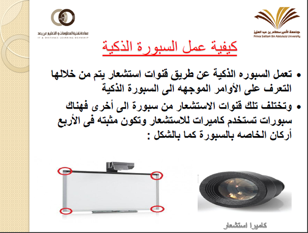 انهت كلية التربية برنامج التعليم الالكتروني والذي استمر لمدة ستة أيام ، تم التدريب فيها على أساسيات البلاك بورد ومنصة شمس وانتهاءً بالتدريب على السبورة التفاعلية، وذلك لعضوات كليات التربية والعلوم والآداب والعلوم الطبية والتطبيقية .وقد تضمنت دورة السبورة الذكية أهميتها وكيفية تشغيلها ومعايرتها والاستفادة من جميع الميزات التي يقدمها البرنامج الملحق بهاFlow! Works ، وقامت بالتدريب الدكتورة سحر عز الدين مشرفة وحدة التعليم الالكتروني بالكلية ، وصاحب التدريب القيام بعمل مهام وتنفيذها على السبورة من خلال مسابقات وتقديم جوائز للفائزات.وقد اكد الدكتور ماجد الشريدة عميد الكلية على اهمية نشر ثقافة التعليم الالكتروني، والاهتمام بالتنمية المهنية لعضوات هيئة التدريس وضرورة إطلاعهن ومتابتعهن لكل ما هو جديد، وتوظيف تقنيات التعليم في رفع كفاءة أدائهن التدريسي.