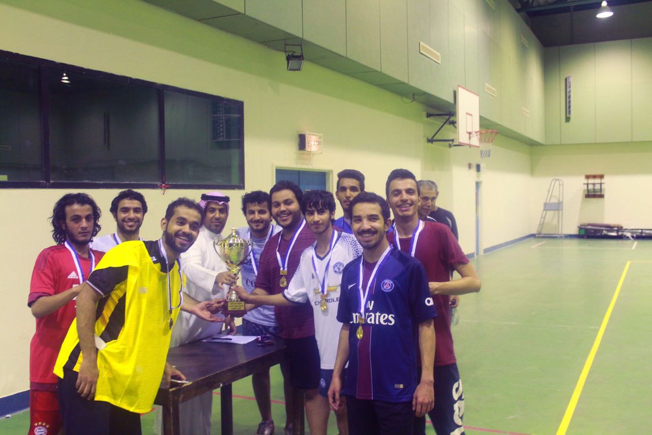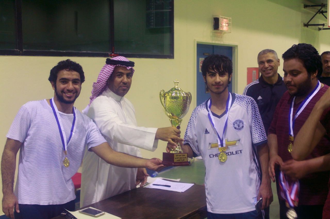 ثم توج مدير إدارة الكلية الأستاذ/ سلطان بن زواهي المطيري فريق نظم المعلومات باللقب لتفوقه بفارق الأهداف.