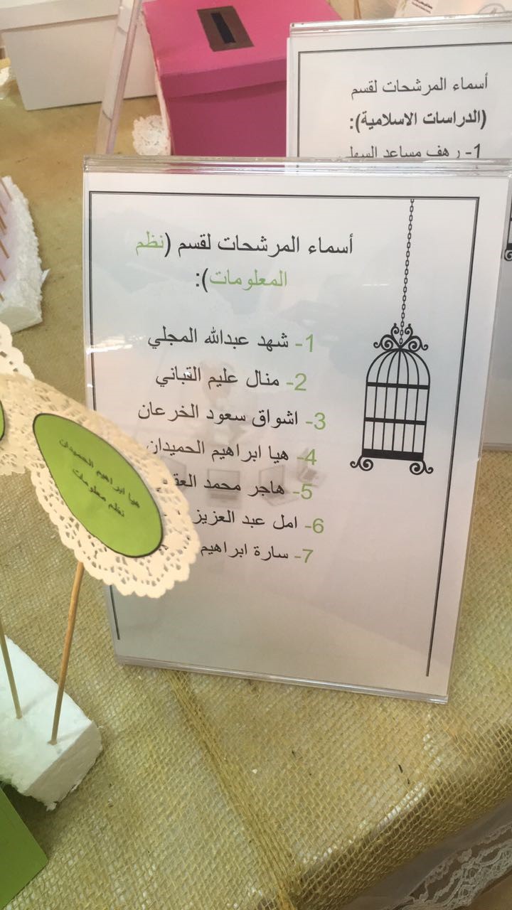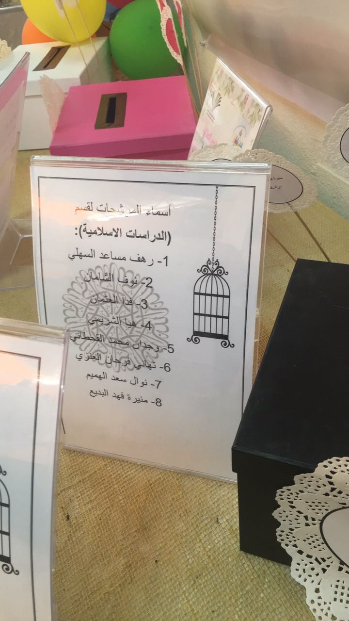 نظمت وحدة المجلس الطلابي الاستشاري بكلية العلوم والدراسات الإنسانية بحوطة بني تميم تحت إشراف منسقة المجالس الطلابية الاستشارية أ/ فاطمة المسعد انتخابات المجالس للطالبات بساحة الكلية وذلك يوم الثلاثاء الموافق 17/ 1/ 1438هـ تحت شعار صوتك أمانة لمن يستحق وذلك في إطار تشكيل المجالس الاستشارية الطلابية ليتم اختيار رئيسة للمجلس ونائبه له وأمينة للمجلس الطلابي الاستشاري لكل قسم. وتم وضع ستة صناديق بألوان مختلفة تشمل كل قسم على حدة أجريت من خلالها الانتخابات للطالبات المرشحات من كل قسم لمنصب الرئيسة والنائبة وكذلك الأمينة وتم جمع الأصوات داخل تلك الصناديق ليتم فرزها والإعلان عن الفائزات فيما بعد.