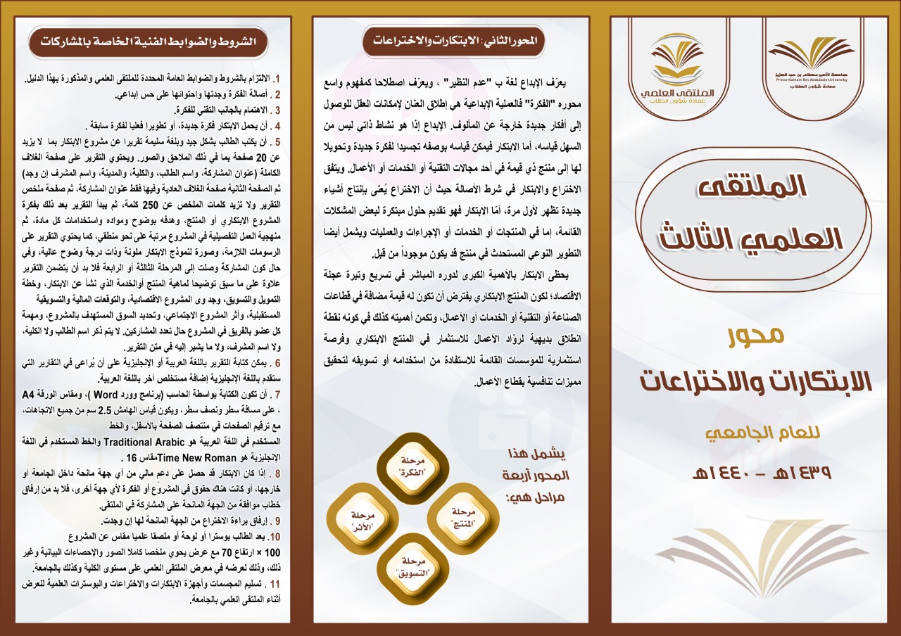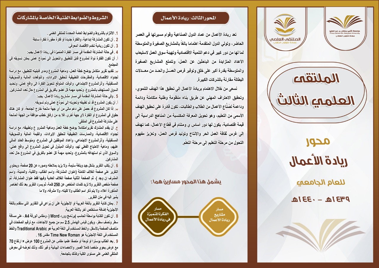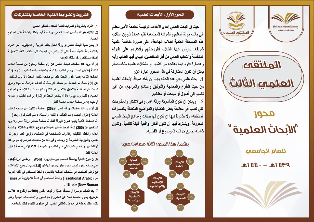 انطلقت الحملة الإعلانية والدعائية التوجيهيّة للملتقى العلمي الثالث بكلية العلوم والدراسات الإنسانيّة بحوطة بني تميم برعاية عميدة الكلية الدكتورة حصّة الهزّاني، وإشراف منسقة الملتقى العلمي الأستاذة إسلام العمري يوم الاحد الموافق 17 / 3/ 1440هـ، وشملت الحملة التخطيط والإعداد الجيد للملتقى والتنافس فيه وفي محاوره، وحث رئيسات الأقسام ومشرفات الأنشطة على نشر البروشورات والأدلة التعريفية ضمن الحملة الإعلانية بين الطالبات وتحفيزهنّ على المشاركة وحثّ عضوات هيئة التدريس بالكليّة على الإشراف ومتابعة الطالبات، للحصول على مراكز متقدمة في الملتقى .