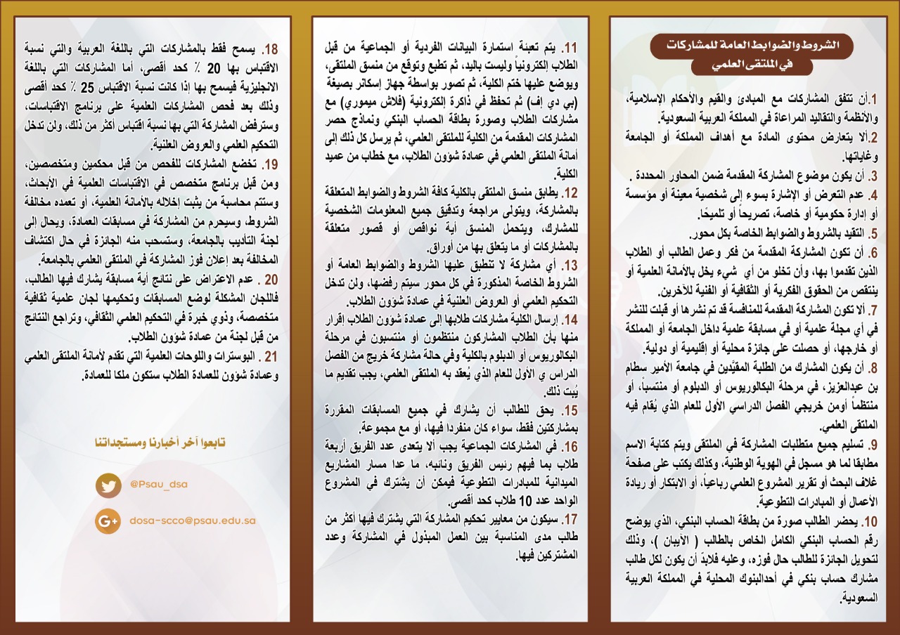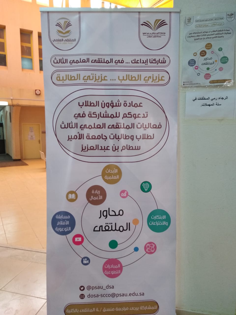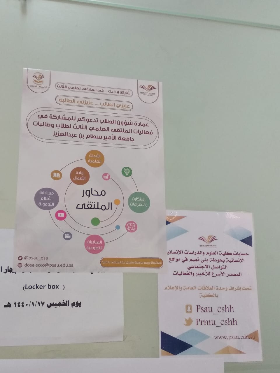 انطلقت الحملة الإعلانية والدعائية التوجيهيّة للملتقى العلمي الثالث بكلية العلوم والدراسات الإنسانيّة بحوطة بني تميم برعاية عميدة الكلية الدكتورة حصّة الهزّاني، وإشراف منسقة الملتقى العلمي الأستاذة إسلام العمري يوم الاحد الموافق 17 / 3/ 1440هـ، وشملت الحملة التخطيط والإعداد الجيد للملتقى والتنافس فيه وفي محاوره، وحث رئيسات الأقسام ومشرفات الأنشطة على نشر البروشورات والأدلة التعريفية ضمن الحملة الإعلانية بين الطالبات وتحفيزهنّ على المشاركة وحثّ عضوات هيئة التدريس بالكليّة على الإشراف ومتابعة الطالبات، للحصول على مراكز متقدمة في الملتقى .