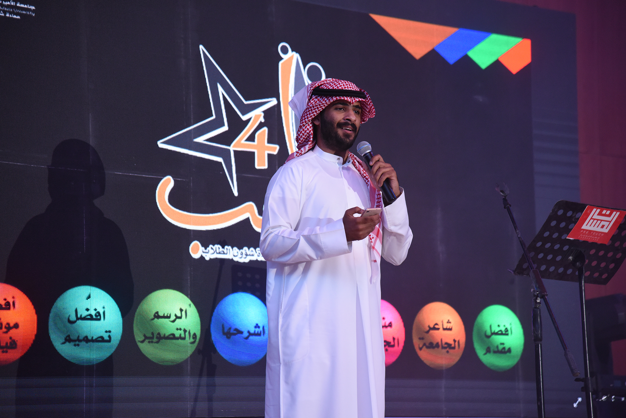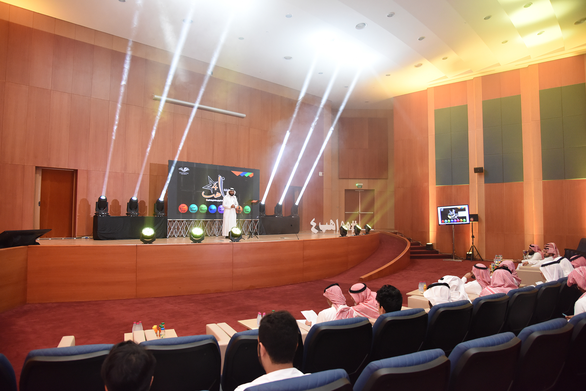 حيث بدأت الفعاليات بتقدمة لمساعد عميد شؤون للأنشطة الطلابية الأستاذ جمال بن حمد الحمداء وضح فيها آلية التصفيات النهائية وطريقة مشاركة الكليات، ثم ألقى عميد شؤون الطلاب الدكتور ثلاب بن عبدالله الشكرة كلمة بهذه المناسبة بين فيها احتفاء العمادة بمثل هذه الفعاليات والبرامج التي تبرز مواهب الطلاب وقدراتهم، وأن المسابقة في نسختها الرابعة المطورة تم تنفيذها على مرحلتين لتكون ميداناً يتبارى فيه الطلاب ويبرزون مواهبهم، وشكر الكليات بعمدائها ومنسوبيها وطلابها على تفاعلهم الكبير مع المسابقة، كما شكر الطلاب المشاركين وبين أنهم هم بيت القصيد في جميع برامج العمادة وفعاليتها.