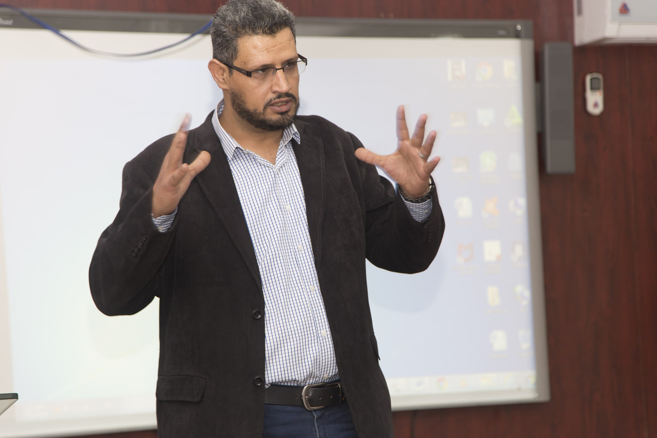 يقدم البرنامج عضو هيئة التدريس بالجامعة الأستاذ محمد العودات ، والمتخصص في التربية الخاصة ، كما حضر البرنامج أكثر من ١٥ متدرب من المكفوفين ومرافقيهم من المعلمين الذي حرصوا على التواجد بجانبهم .