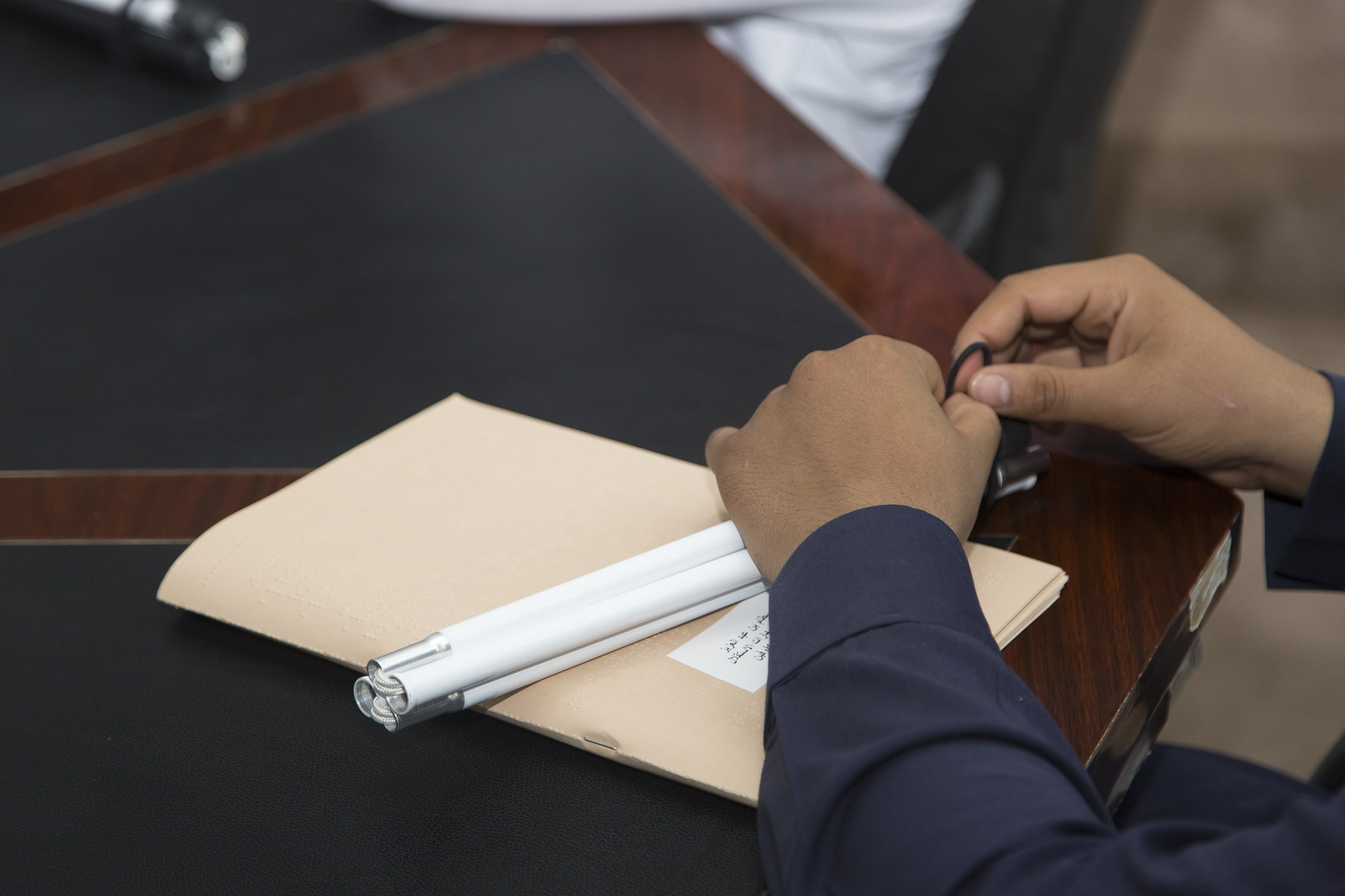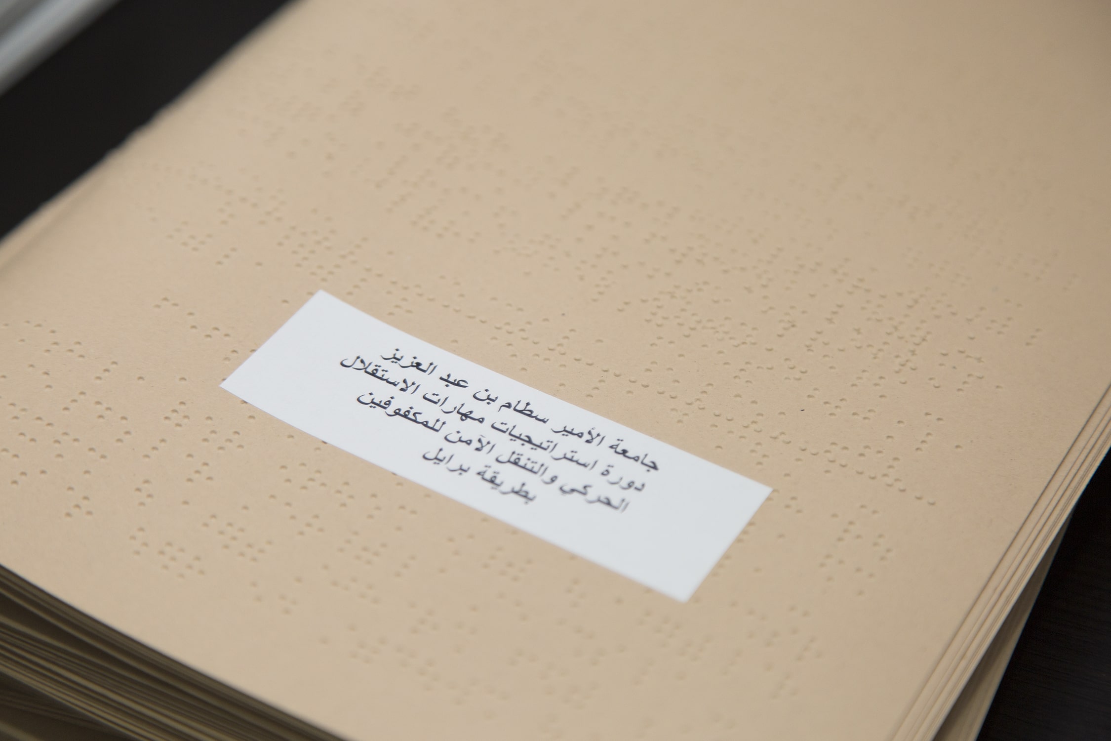 ووفرت العمادة الحقيبة التدريبية بطريقة “ برايل “ للتسهيل على المتدربين المتابعة والمذاكرة مع المدرب أثناء تقديم الدورة .