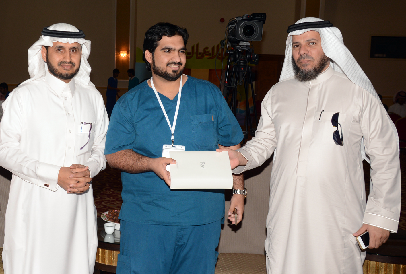 وبعد أنتهاء فعاليات اليوم الأول من المؤتمر تقدم عميد شؤون الطلاب الدكتور مسفر الكبيري بتسليم الجوائز للطلاب الفائزين بجوائز السحب اليومي للمشاركين والحضور , حيث حصل على جائزة السحب من الطلاب المشاركين الطالب/ إبراهيم القرني من كلية طب الأسنان , ومن الطالبات المشاركات الطالبة/ إيمان اليحيا من كلية إدارة الأعمال.