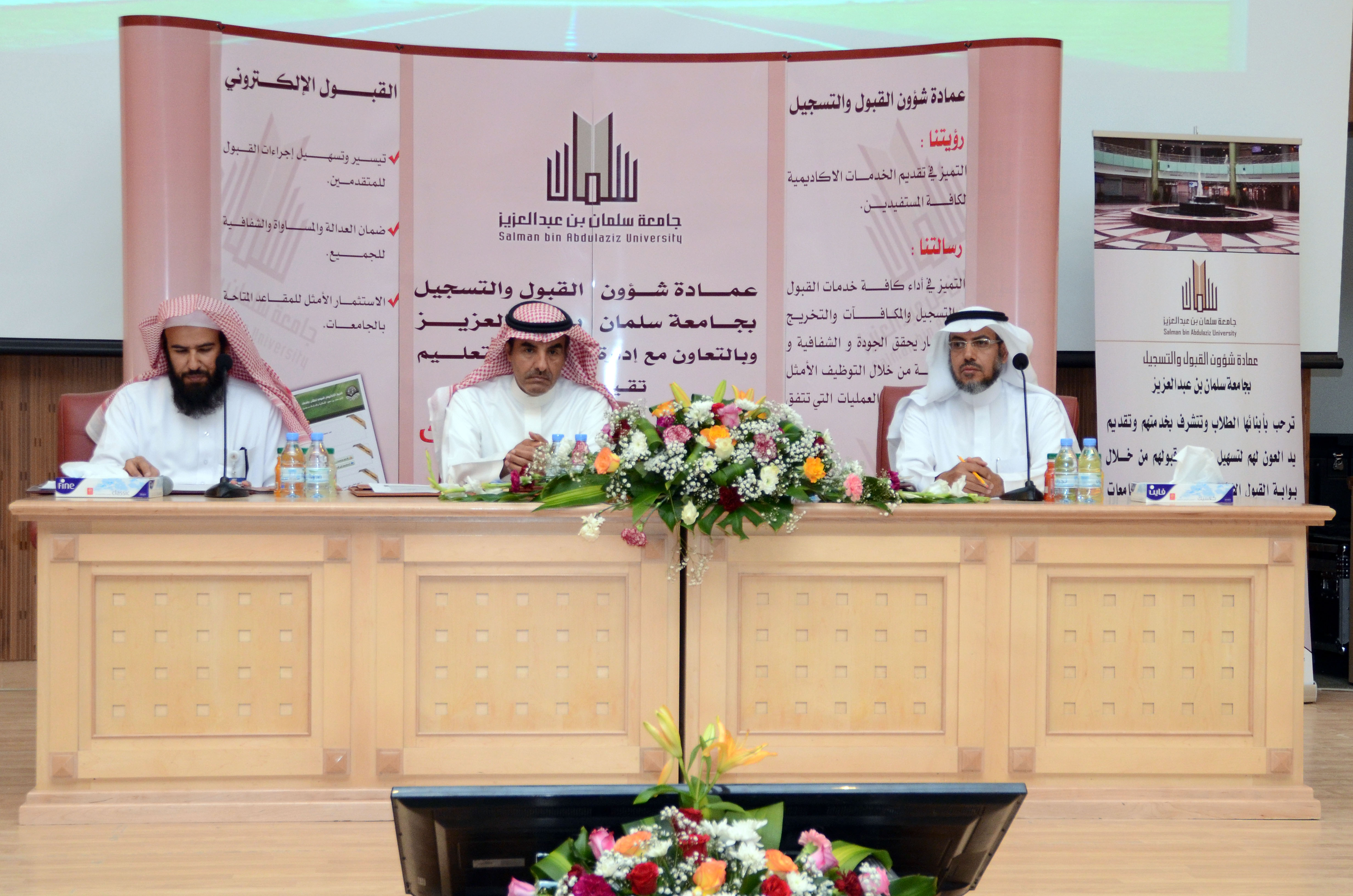 unicode-bidi:embed">أقامت عمادة شؤون القبول والتسجيل بجامعة سلمان بن عبدالعزيز بالتعاون مع إدارة التربية والتعليم بالخرج اللقاء التعريفي الأول بعنوان "الطريق إلى جامعتك" وذلك يوم الاثنين 7/6/1435هـ بمسرح المدينة الجامعية وبحضور معالي مدير الجامعة د. عبدالرحمن العاصمي ومدير إدارة التربية والتعليم بالخرج د. زيد الجليفي.