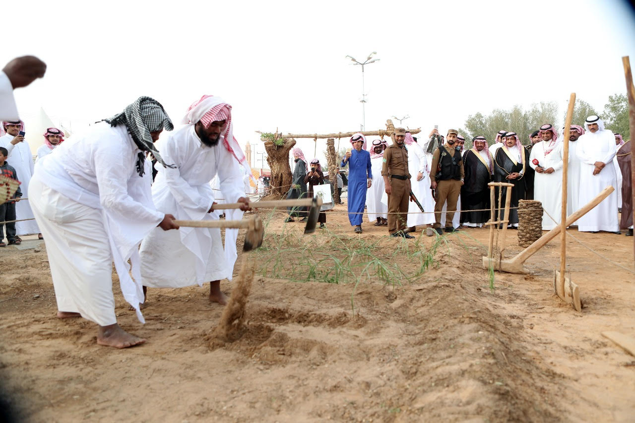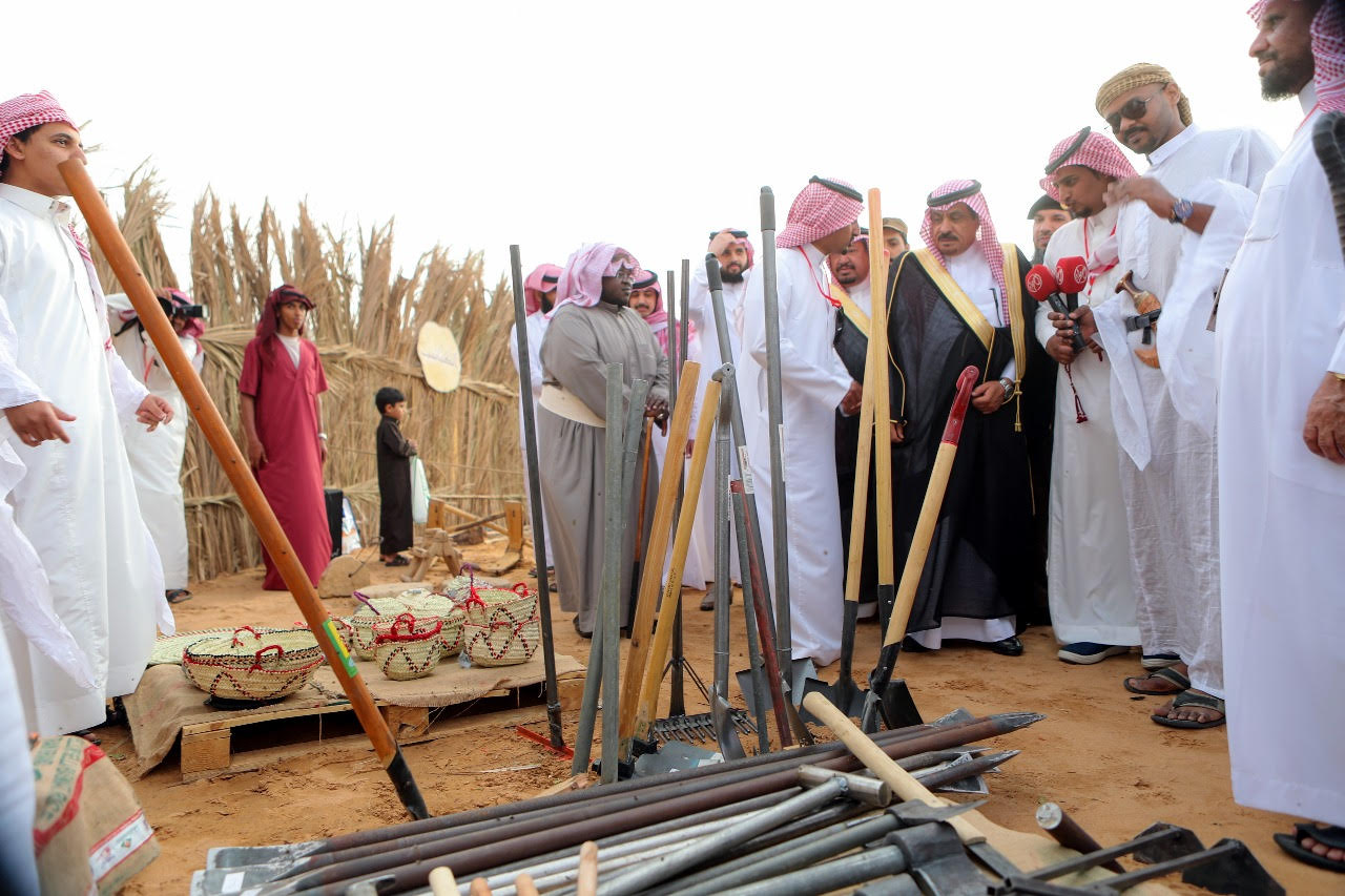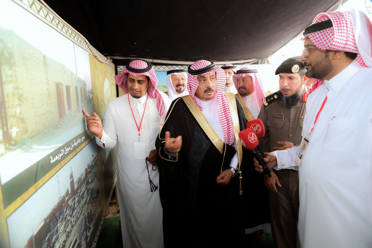 بدء حفل الافتتاح بإزاحة المحافظ الستار عن اللوحة التذكارية للمهرجان ، ثم قام ومرافقوه من مسئولي الجهات الحكومية والأهلية والزوار بجولة على أجنحة الجهات المشاركة ، وشاهد نماذج تحاكي الأسواق الشعبية ، ومجالات البيع والشراء قديماً ، وبناء البيوت بالطين ، والألعاب الشعبية ، وحفلات الزواج قديماً والطب الشعبي ، والكتاتيب ، وجلسة المشراق . والاسر المنتجة، والحرف القديمة ، شارك بعدها في أداء العرضة السعودية التي قدمتها إحدى الفرق الشعبية .
