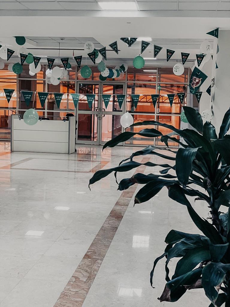 ثم فقرة بعنوان المملكة في عيون المقيمات ، وهي عبارة عن رسائل حب عبر الواتس للمملكة من المقيمات بداخلها منأستاذات غير سعوديات من جميع أنحاء المملكة كما تم عرض فيديو لمناطق بالمملكة ، وكذلك صور من داخل كلية الآداب والعلوم شطر الطالبات وهي متزينة بالأعلام والرايات الخضراء احتفالا بهذه المناسبة العظيمة ، ثم قدمت الدكتورةشرين الخطيب الأستاذ المساعد بقسم اللغة العربية فقرة عن السعوديات اللاتي وصلن للعالمية ، واختتم الحفل بأنشودة بلادي منار الهدى .