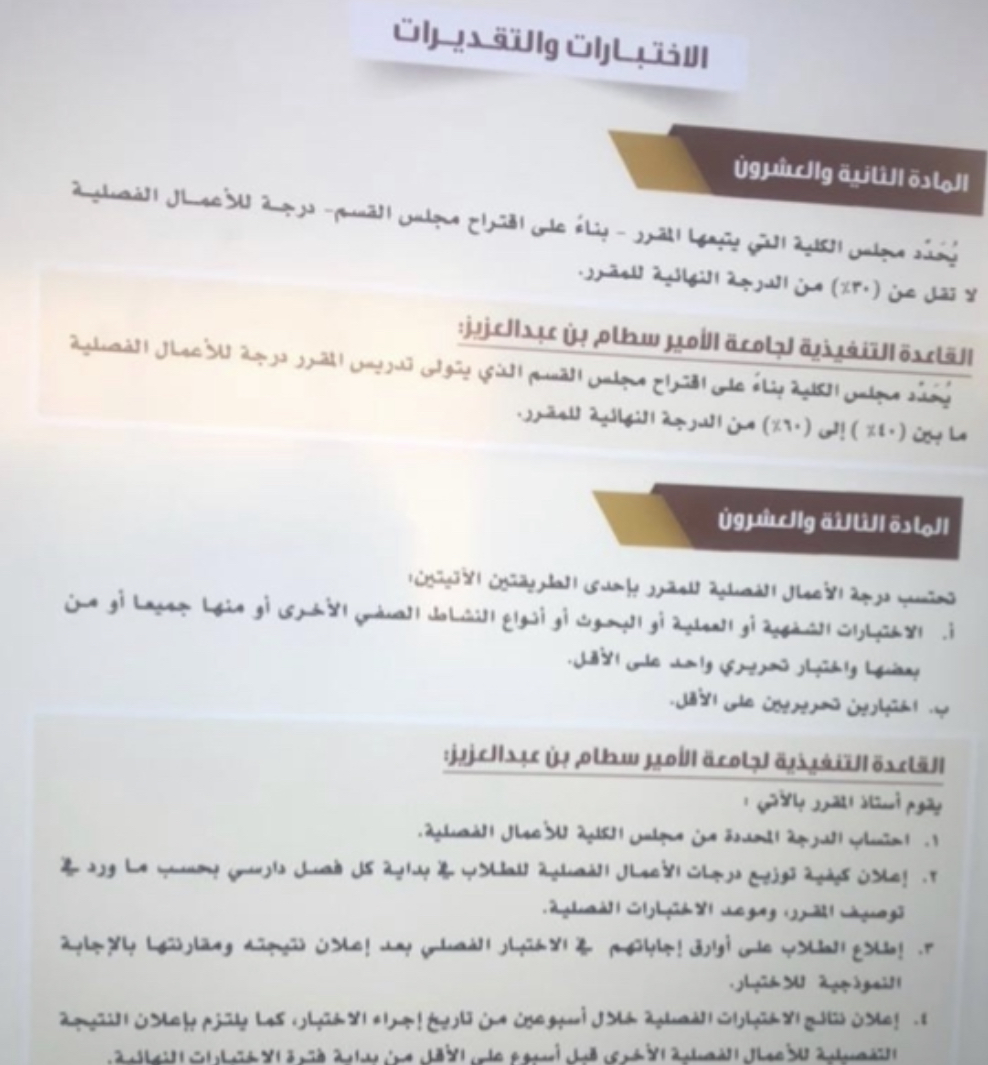 أما في المحور الأخير تم التطرق الى تعليمات الاختبارات و التقديرات.