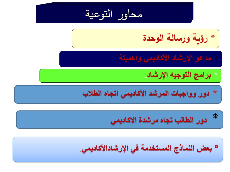 أقامت وحدة الإرشاد الأكاديمى للطالبات بكلية العلوم الطبية التطبيقية بوادي الدواسر ورشة عمل بعنوان ( التوعية بالإرشاد الأكاديمي وبرنامج التوجيه و الإرشاد ) وفقا للائحة جامعة الأمير سطام بن عبد العزيز قدمتها دكتورة ميرفت محمد الكاشف مشرفة وحدة الارشاد الاكاديمى للطالبات بالكلية و ذلك يوم الأحد الموافق 22/2/1444هـ عبر البلاك بورد و هدفت الورشة الى تعريف الطالبات بالإرشاد الأكاديمى و أهميته و رؤية ورسالة الوحدة . كما تم التطرق الى شرح برنامج التوجيه والإرشاد و تم توضيح دور الطالب تجاه المرشد الأكاديمى . و تم التطرق الى الية تقديم خدمات التوجيه والإرشاد وفق الإجراءات المنظمة لخدمات التوجيه والإرشاد بعمادة شؤؤون الطلاب