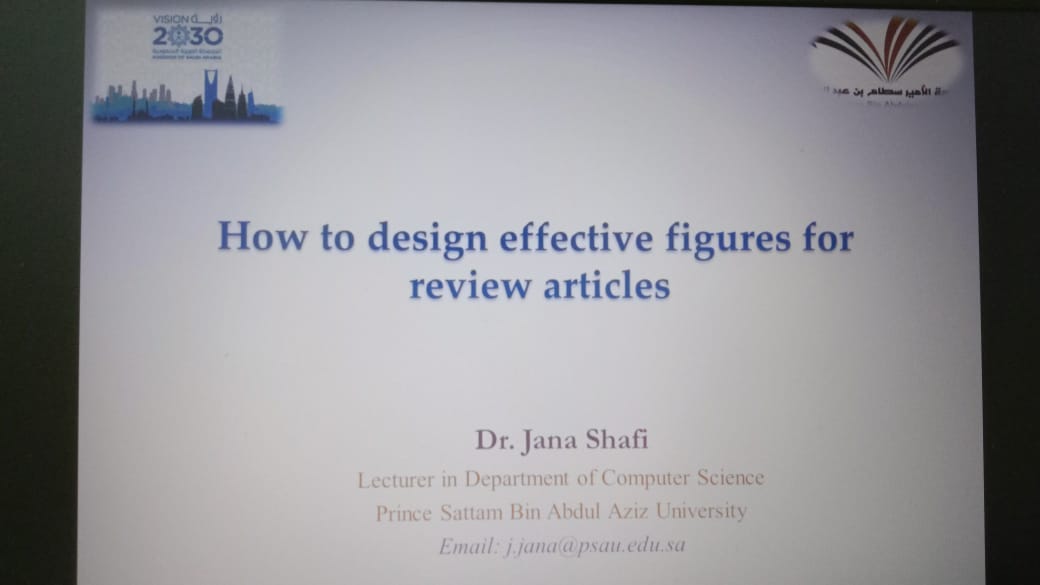 لقد كانت ورشة عمل تفاعلية حيث قدمت الأستاذة/ جانا شافي – محاضر بقسم الحاسب الآلي عرضا عن كيفية تصميم أشكال فعالةللمقالات والأبحاث العلمية ، ثم بينت أهميتها في البحث العلمي وشجعت بدورها الحاضرات على استخدام الأشكال والمخططات فيالمجالات الأكاديمية، موضحة أهميتها متبوعة بأهداف الورشة، كما ساعدت مقدمة الورشة في جعل الموضوع واضحًا من خلال إعطاء أمثلة فعالة، وقد تعاملت بشكل فعال مع الاستفسارات وأجابت عليها بشكل يستحق الثناء.