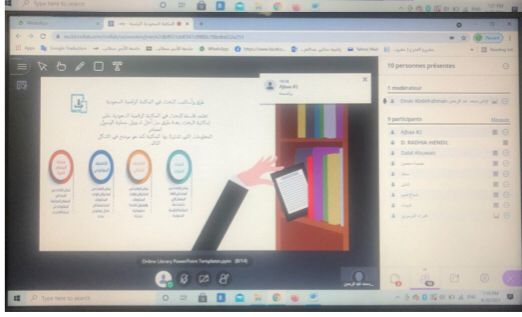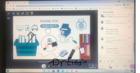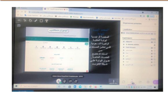 . 2قامت الدكتورة بعرض بوربوينت استعرضت فيها خطوات الدخول و التسجيل في المكتبة الرقمية السعودية بالتفصيل وايضا شرح طرق البحث في المكتبة الرقمية السعودية، بالإضافة إلى تحفيز الطالبات وحثهم على الاستفادة من المكتبة الرقمية السعودية.