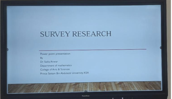 أقامت وحدة الخريجات بكلية الاداب والعلوم بوادي الدواسر الممثلة في لجنة مشاريع التخرج " شطر الطالبات" ورشة عمل بعنوان "Survey Research " بأشراف الدكتورة سعدية أنور أستاذ مساعد بقسم الرياضيات وذلك يوم الاربعاء الموافق 1443/08/21 هـ الساعة التاسعة صباحا والتي تهدف إلى تهيئة الطالبات المتوقع تخرجهن لسنة الامتياز من خلال تدريبهم على الطريقة المثلى للبحث العلمي وقد أقيمت الورشة بالتعاون مع الدكتورة راضية مداني منديل