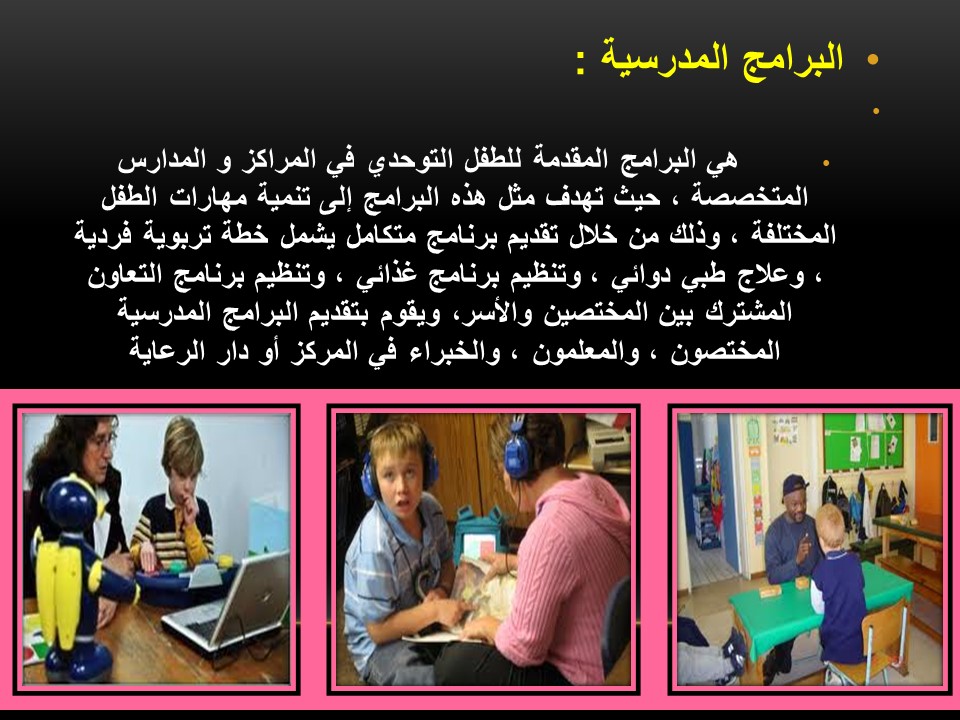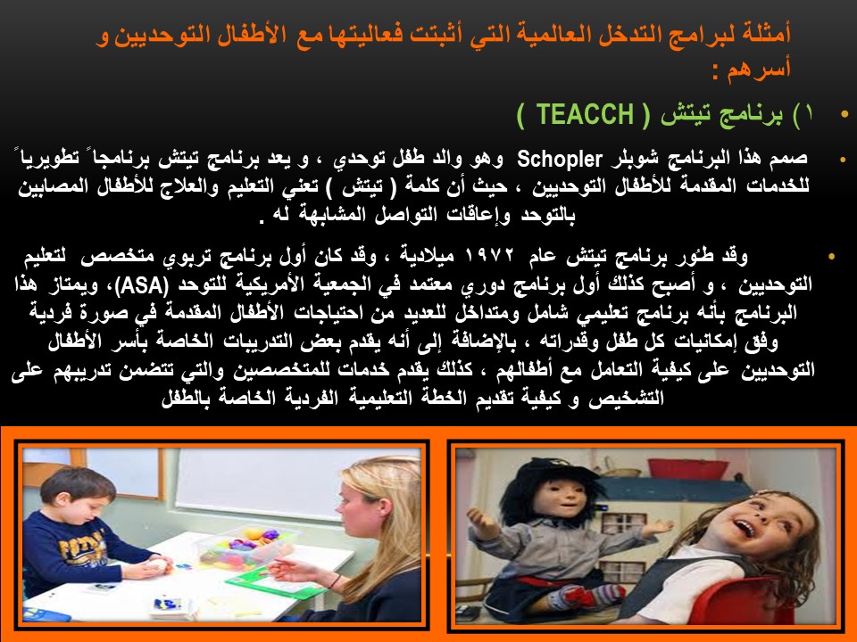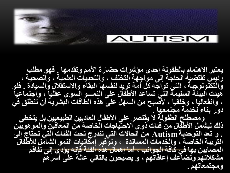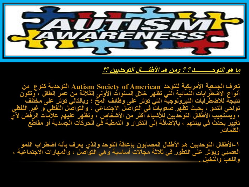 وقد اشتملت على المحاور التالية: تعريف التوحد وأسبابه وأنواعه، سمات الطفل التوحدي ، والمقاييس المستخدمة في تشخيص التوحد .