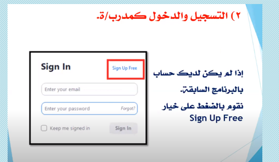 · التسجيل في برنامج زووم كمتدرب ومدرب