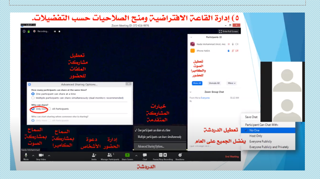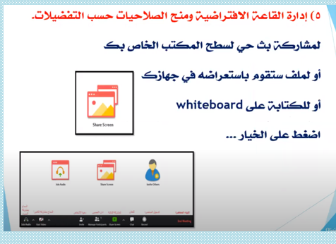 · إدارة القاعة الافتراضية وإعطاء الصلاحيات