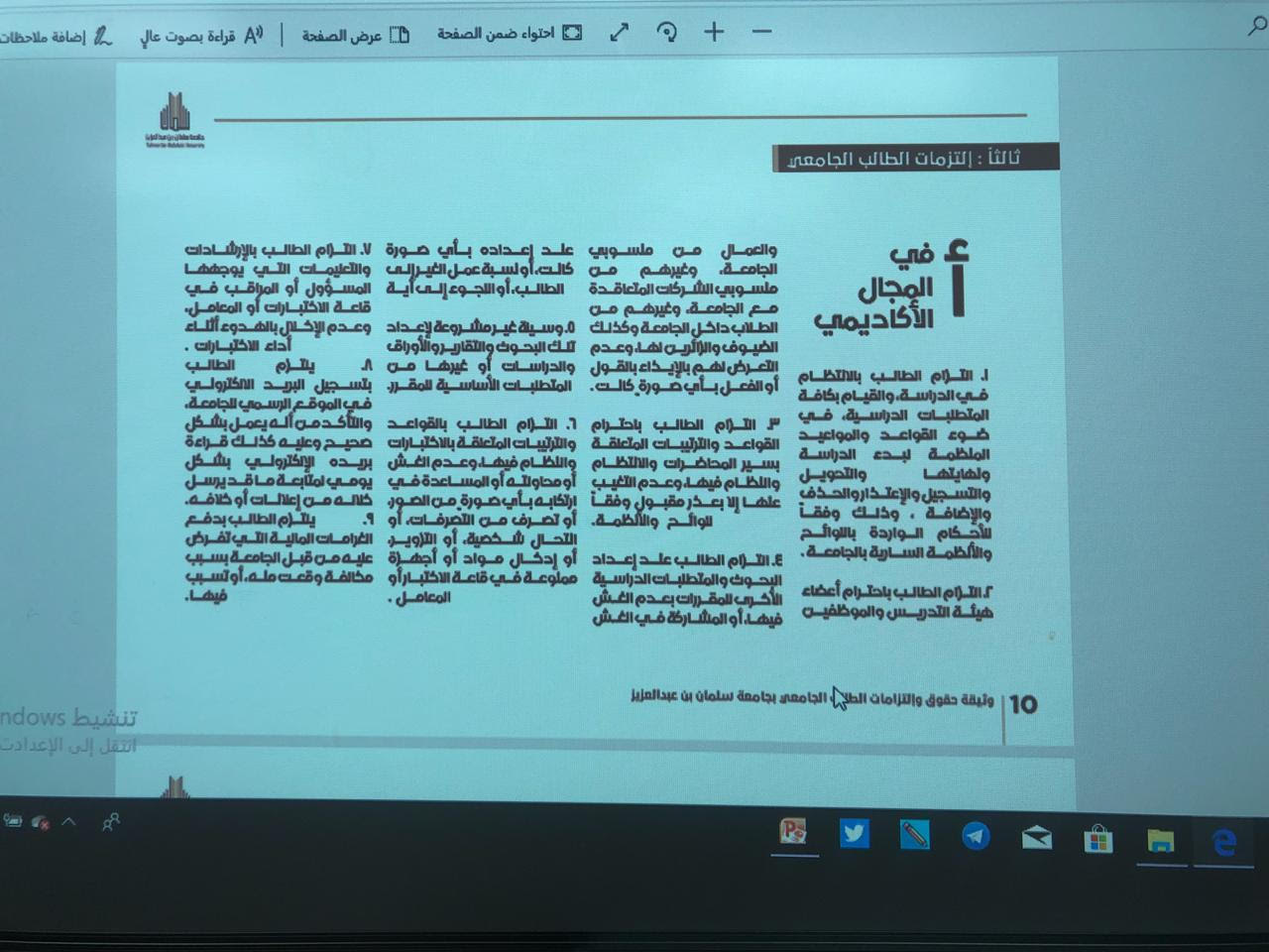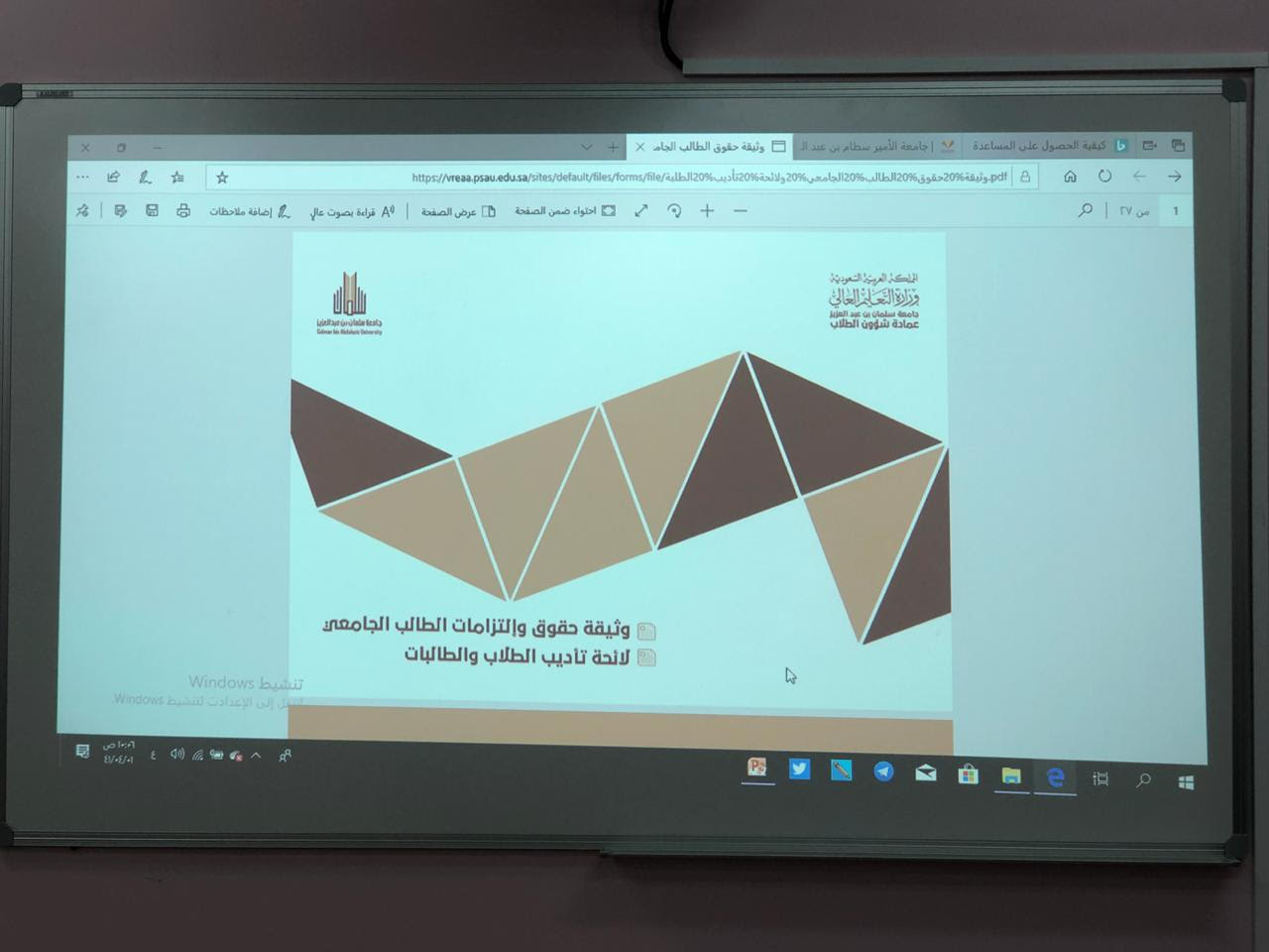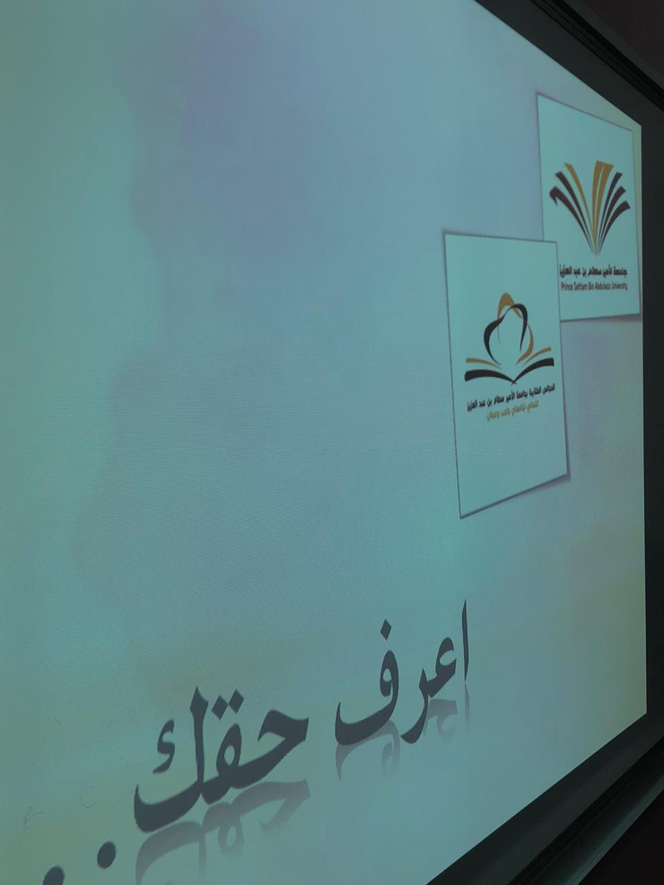 بإشراف مباشر من سعادة وكيلة كلية المجتمع بالخرج الدكتورة/ أمينه بنت عبدالرحمن المشحن؛ ومتابعة منسقة المجالس الطلابية بالكلية الأستاذة/ ناديه البلوي؛ نظمت وحدة العمل الطلابي ووحدة الحقوق الطلابية والمجلس الاستشاري الطلابي بكلية المجتمع فعالية بعنوان: " اعرف حقك " يوم الخميس الموافق ٢٩-٣-١٤٤١ هـ في قاعة الأنشطة الطلابية بالكلية. وقد تضمنت الفعالية محاضرة تعريفية عن حقوق الطالب والتزاماته الأكاديمية وغير الأكاديمية المنصوص عليها في وثيقة حقوق والتزامات الطالب الجامعي بجامعة الأمير سطام بن عبدالعزيز. وتضمنت الفعالية كذلك توزيع كتيبات صغيرة تعريفية عن حقوق الطالب.