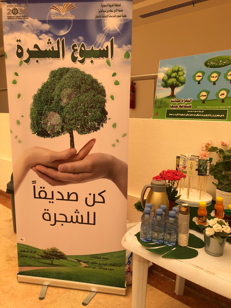 تحت رعاية عميد كليه العلوم والدراسات الانسانية بالسليل الدكتور سلمان العتيبي ووكيلة الكلية وضمن مشاركة الكليه للاحتفال بأسبوع البيئة نظمت وحدة شوؤن الطالبات بالتعاون مع طالبات قسم الدراسات الإسلامية معرض يحتوي على العديد من الأركان كركن إعاده التدوير وركن التشجير وركن أسبوع الشجرة وركن المنشورات وركن حفظ النعمه وركن الأفلام التوعوية.
