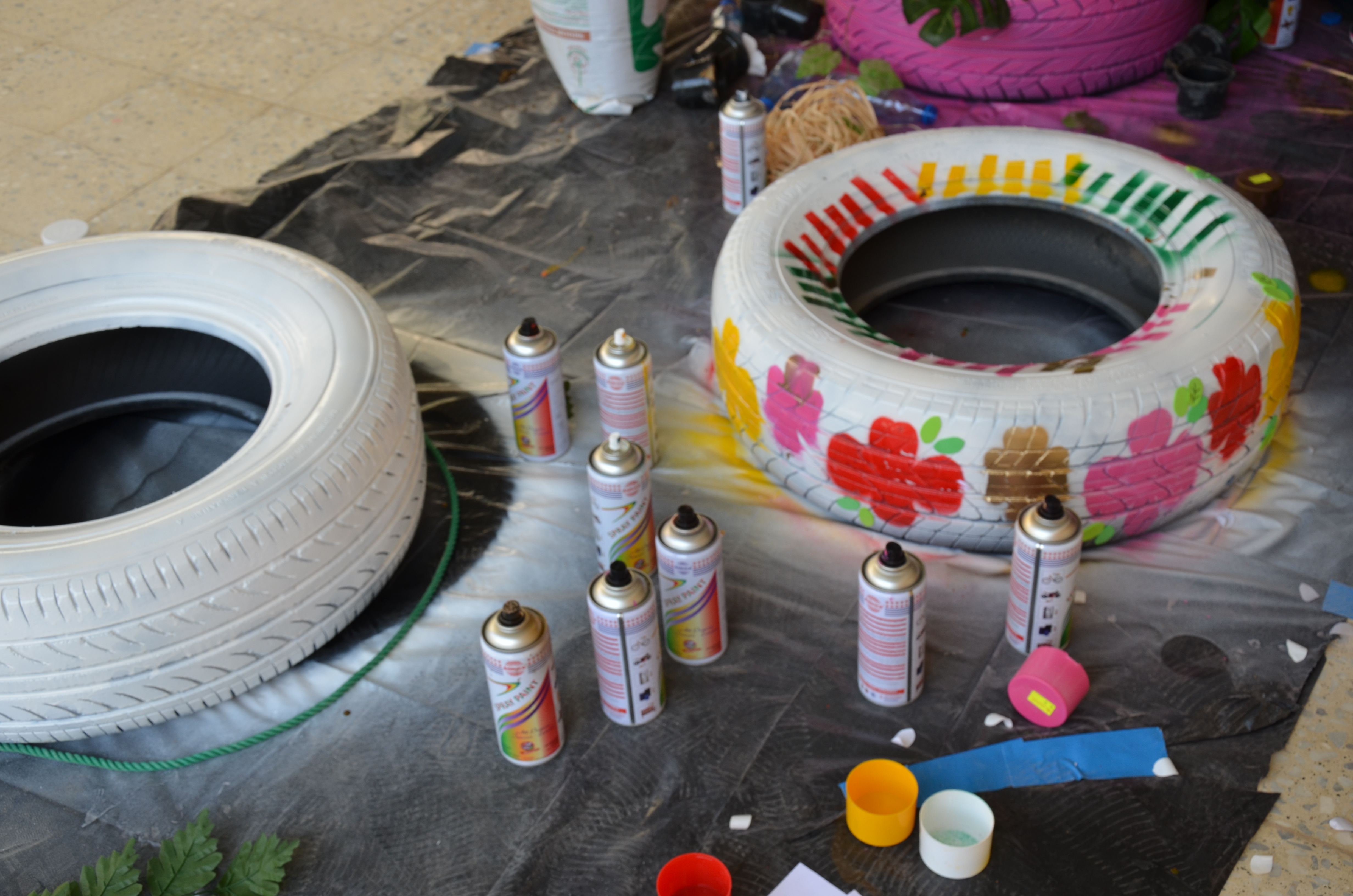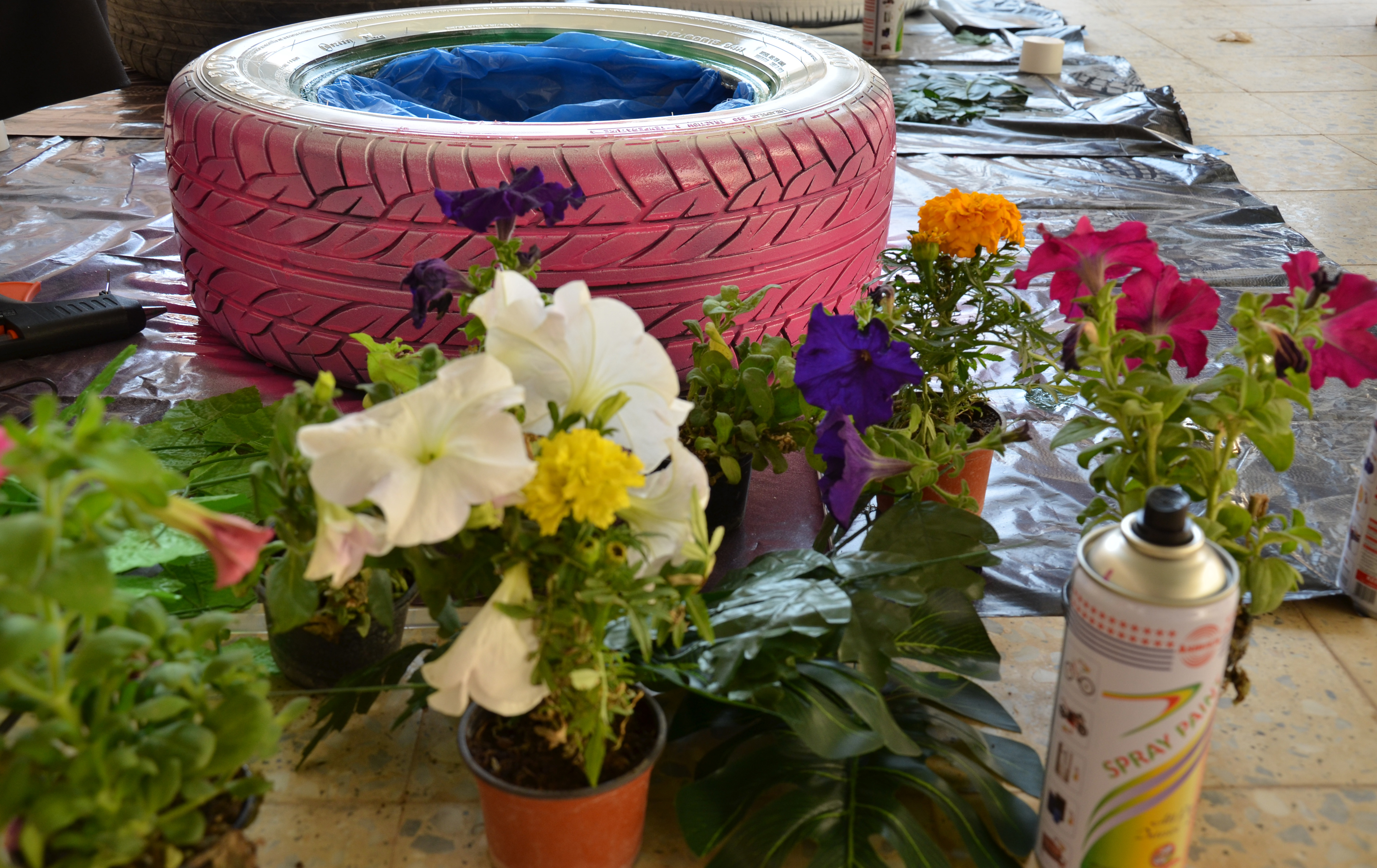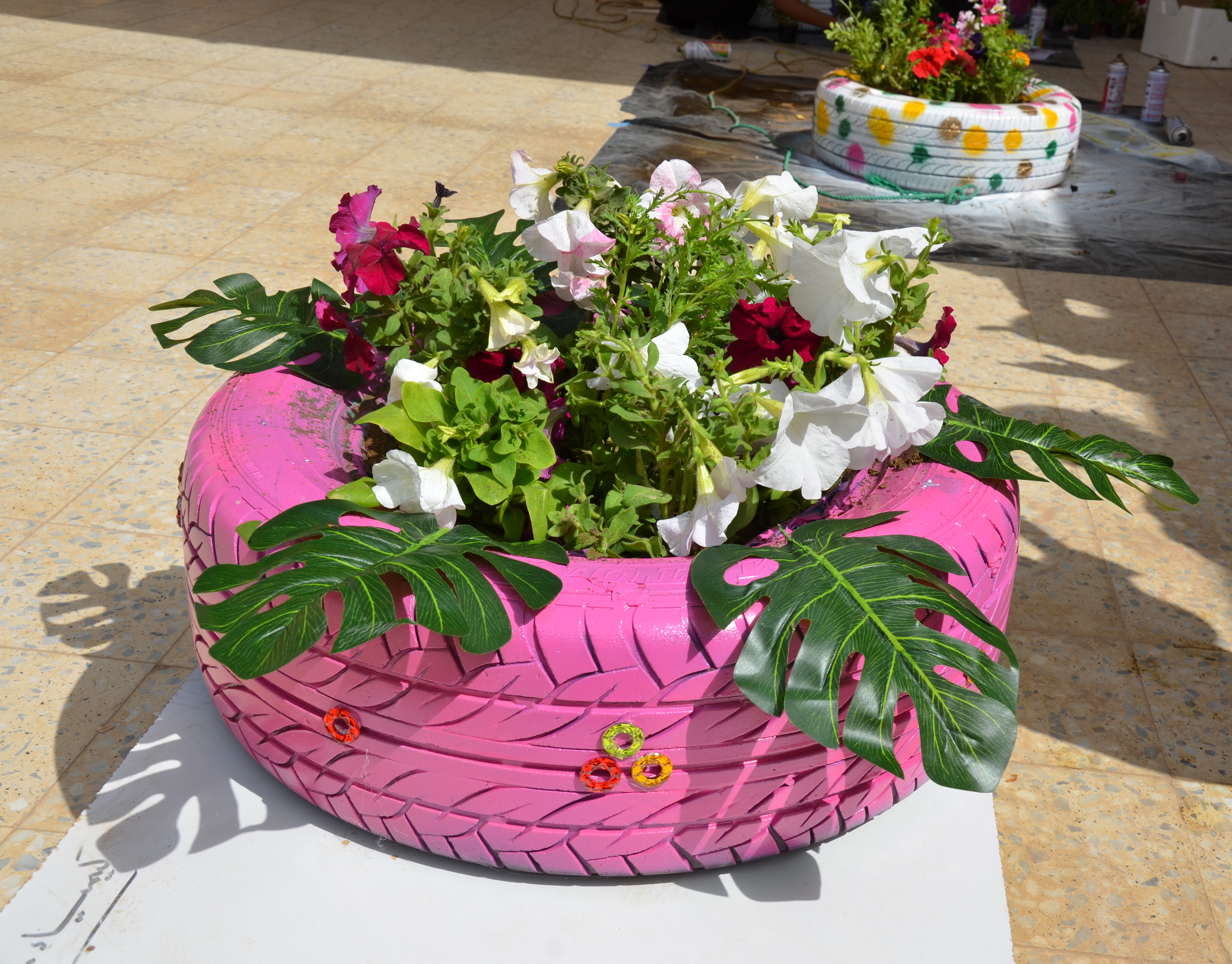 وقد تم ذلك النشاط بإعادة تدوير بعض المنتجات البلاستيكية، والخشبية، وتسخير بعض خامات البيئة لإنتاج أحواض تتزين بها ساحات الكلية من أعمال الطالبات، وقد لقي البرنامج إقبالاً وتفاعلاً كبيراً من الطالبات.