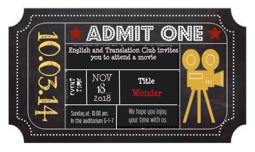 - أيضًا في يوم الأحد 10/3/1440هـ قام النادي بعرض ترجمة الطالبات لفيلم وذلك في مسرح الكلية، حيث لاقت تفاعلًا وحضورًا من طالبات ومنسوبات الكلية.