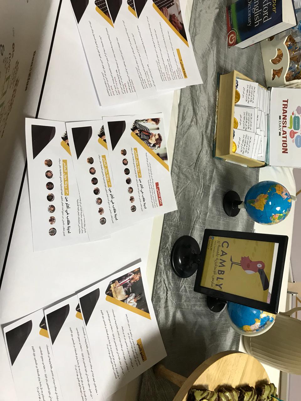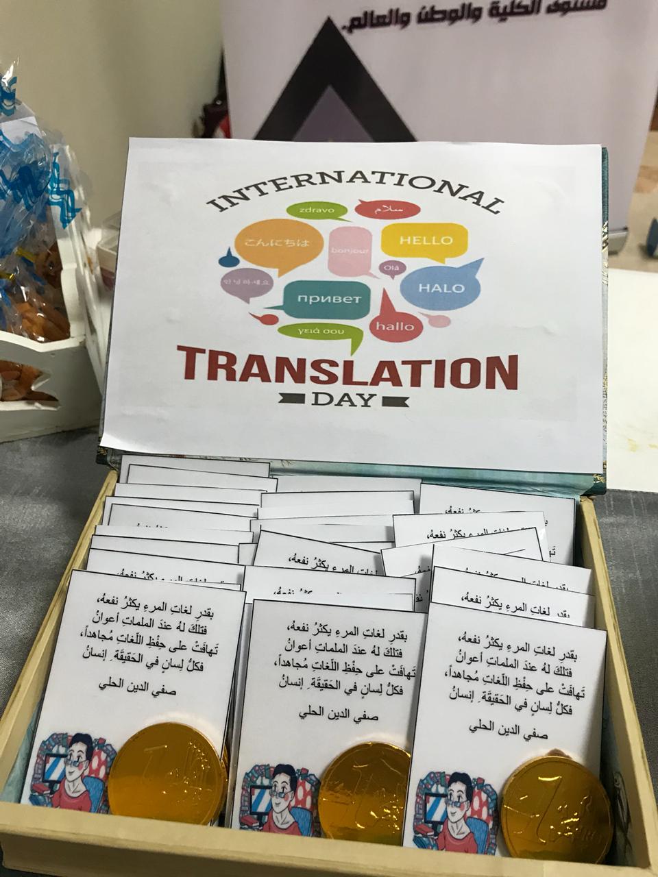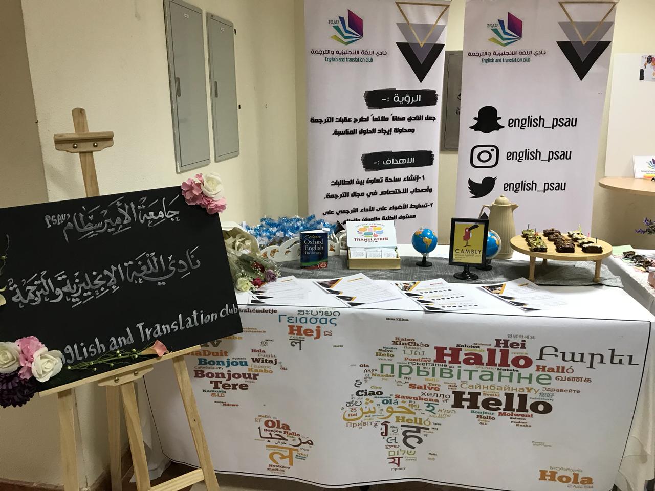 وكذلك أقام قسم اللغة الإنجليزية بالتعاون مع مكتب العمل الطلابي في يوم الأحد الموافق 26/1/1440هـ الاحتفال باليوم العالمي للترجمة في بهو الكلية حيث جاء فيه التعريف بأهمية الترجمة وبعض الإرشادات للترجمة الفعالة وقد كان هناك أيضًا مسابقات حصلن فيها الطالبات الفائزات على اشتراك في معهد كابلي.