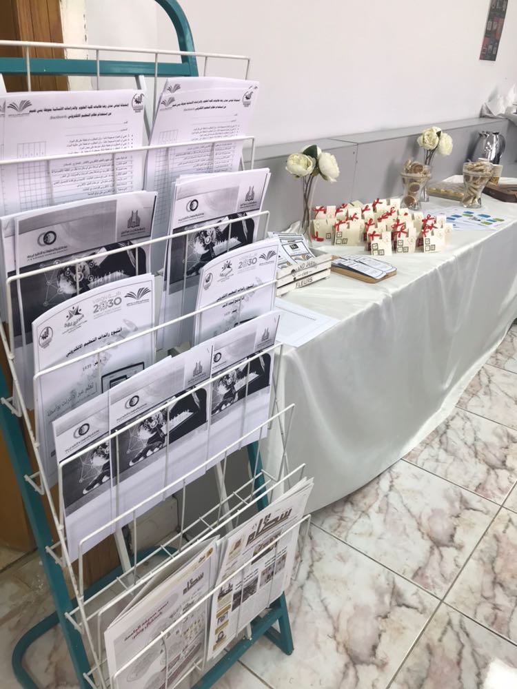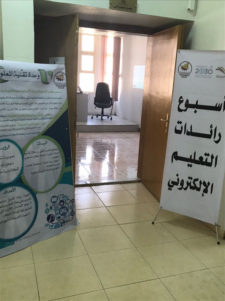 كالتعريف بالتعليم الالكتروني (Blackboard) والدخول على نظام التعليم الالكتروني عن طريق جهاز الحاسب وطريقة حل الواجبات والاختبارات وحلقات النقاش والتعامل مع تطبيق الجوال وغيرها من المحاور الهامة. وفي نهاية الورشة تم توزيع أدلة خاصة بالتعليم الالكتروني واستبيان لقياس مدى رضا الطالبة عن نظام التعليم الالكتروني ولمعرفة المعوقات من استخدامه.