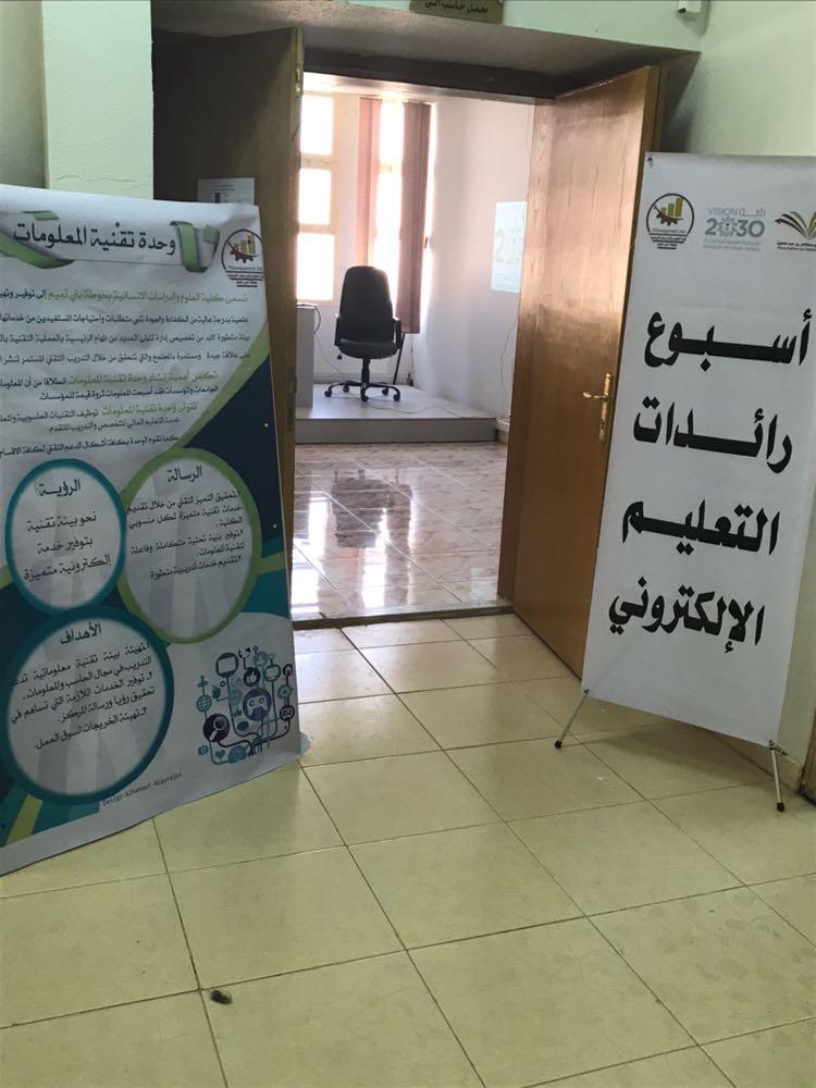 قامت وحدة تقنية المعلومات بالتعاون مع وحدة العمل الطلابي اليوم الأحد الموافق ٢/٢/ ١٤٣٩ هـ بافتتاح أسبوع رائدات التعليم الالكتروني بالكلية بحضور عميدة الكلية الدكتورة حصة بنت سعود الهزاني ، وتم حسب خطة الوحدة لليوم الأول عمل ورشة تدريبية لطالبات قسم الرياضيات تحت إشراف رئيسة قسم الرياضيات د. عواطف الصديق. ومن خلال هذه الورشة تم تعريف الطالبات على عدد من المحاور: