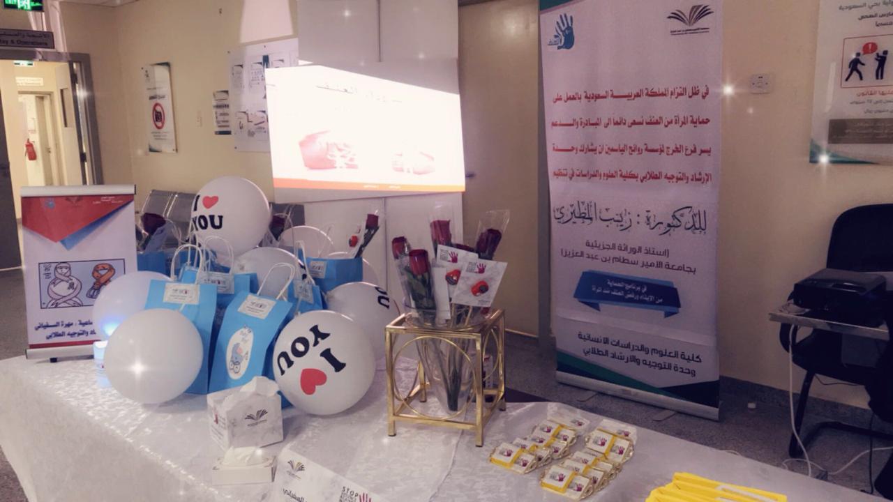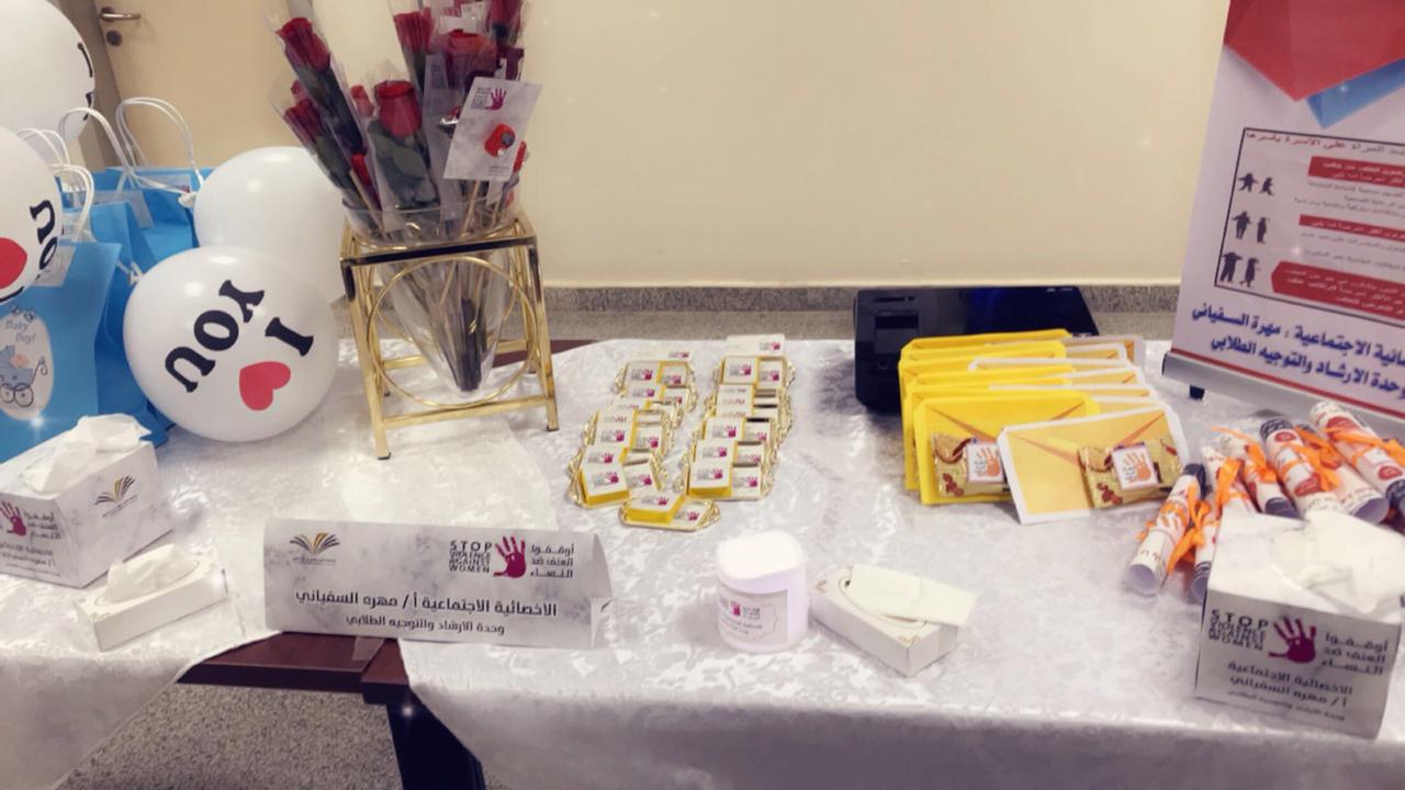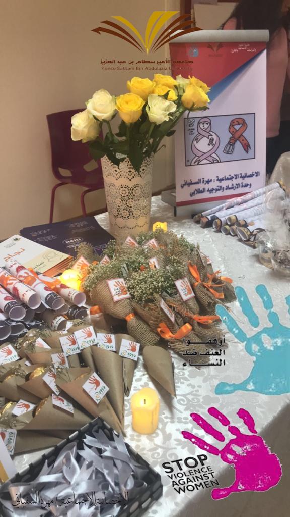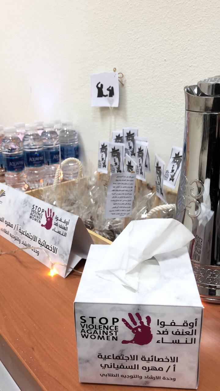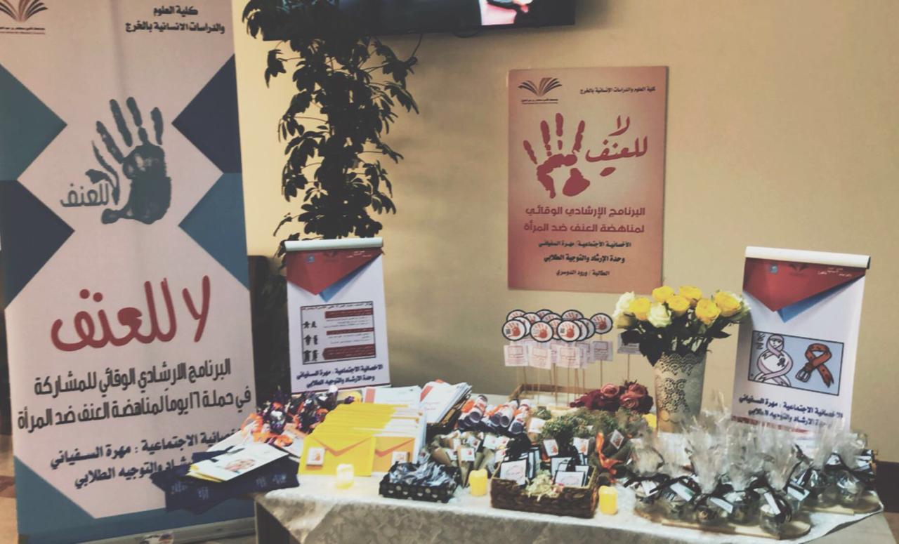 أقام مكتب وحدة الإرشاد والتوجيه الطلابي بكلية العلوم والدراسات الإنسانية أسبوعًا توعويًا عن (العنف ضد المرأة) في الأسبوع الثامن من العام الجامعي 1439_1449هـ بإشراف الأخصائية الاجتماعية الأستاذة مهره السفياني وقد اشتملت الفعاليات على التالي: