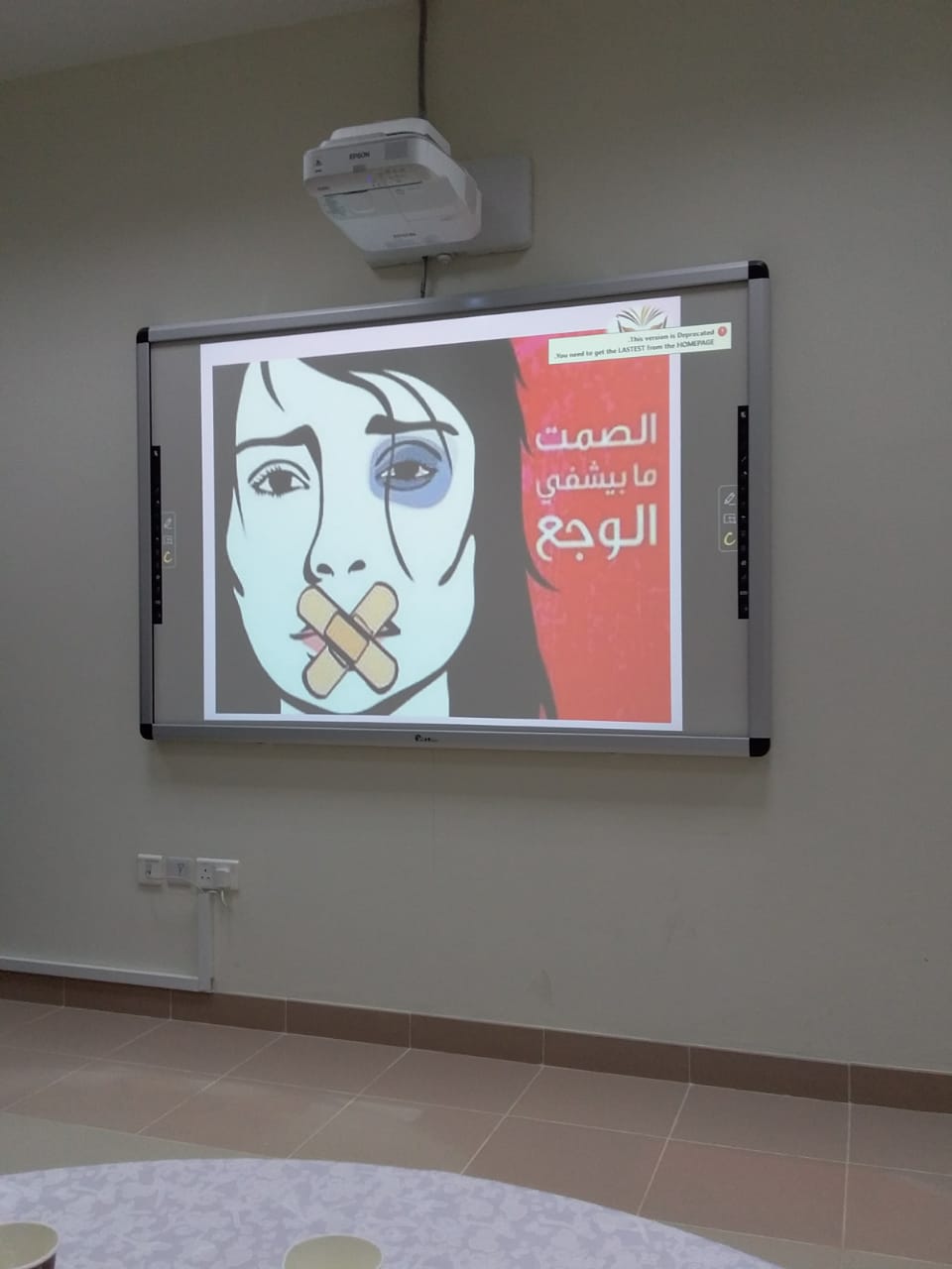 - ركن إرشادي وقائي للعنف ضد المرأة وذلك يوم الأحد الموافق 19/6/1440هـ حيث اشتمل على توزيعات و بروشورات كذلك كان هناك عرضًا تلفزيونيًا في الساحة الداخلية للكلية.