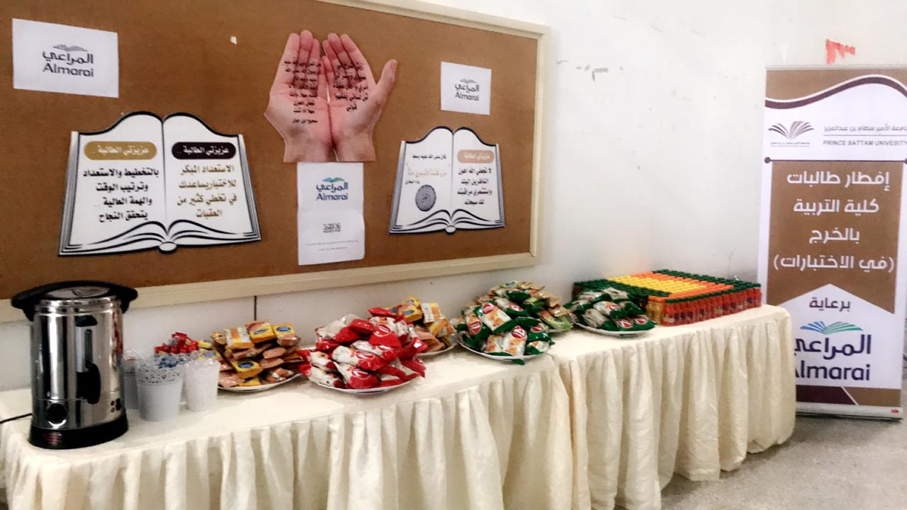 وقد نظمت الوحدة ركن ضيافة للطالبات برعاية من شركة المراعي يشمل على أصناف من المشروبات والساندوتشات، ويسر الوحدة أن تتقدم بجزيل الشكر والتقدير لشركة المراعي على مشاركتها المستمرة مع الكلية.